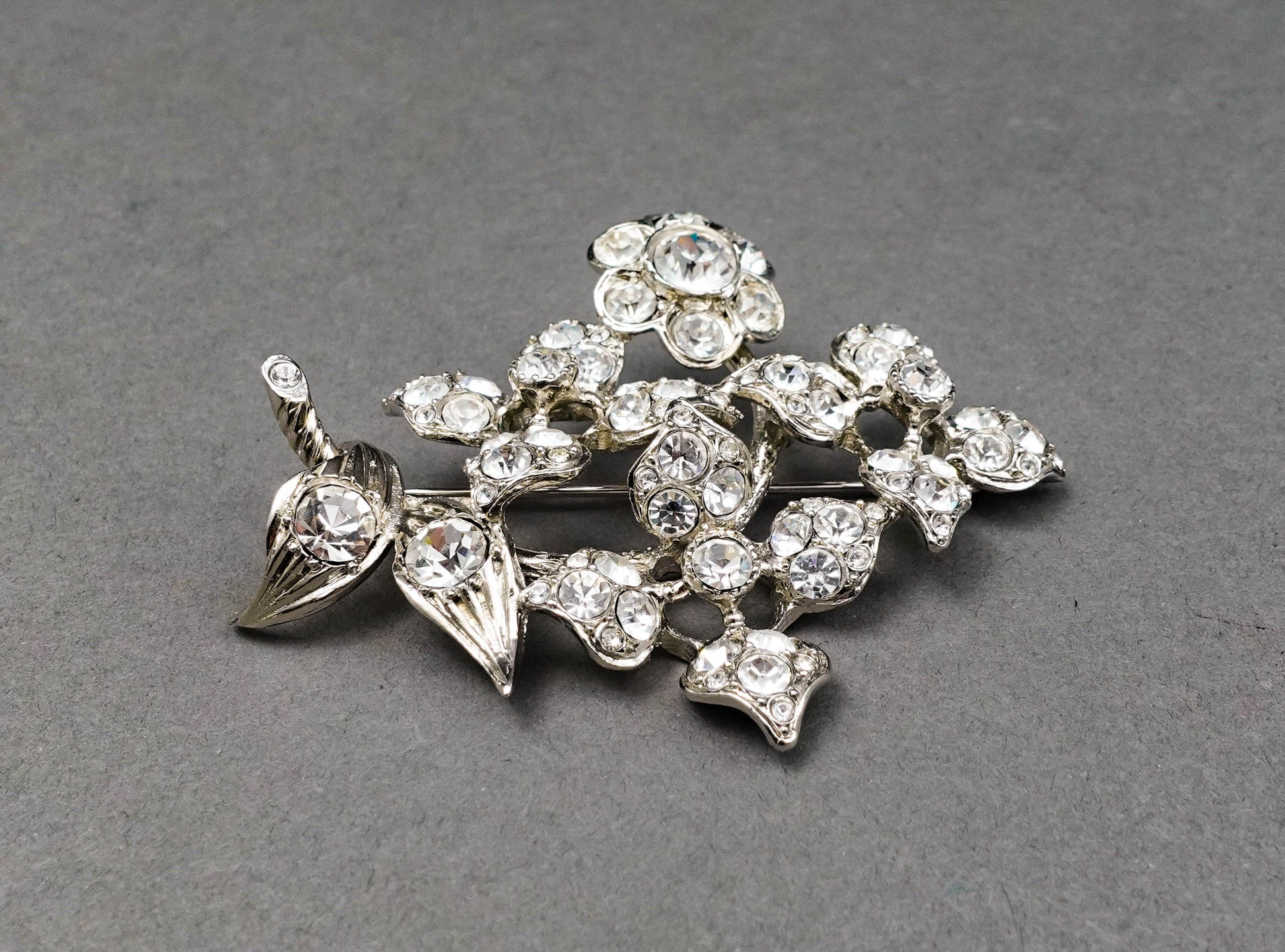 Sonia Rykiel Paris Silvertone Rhinestone Floral Pin Brooch