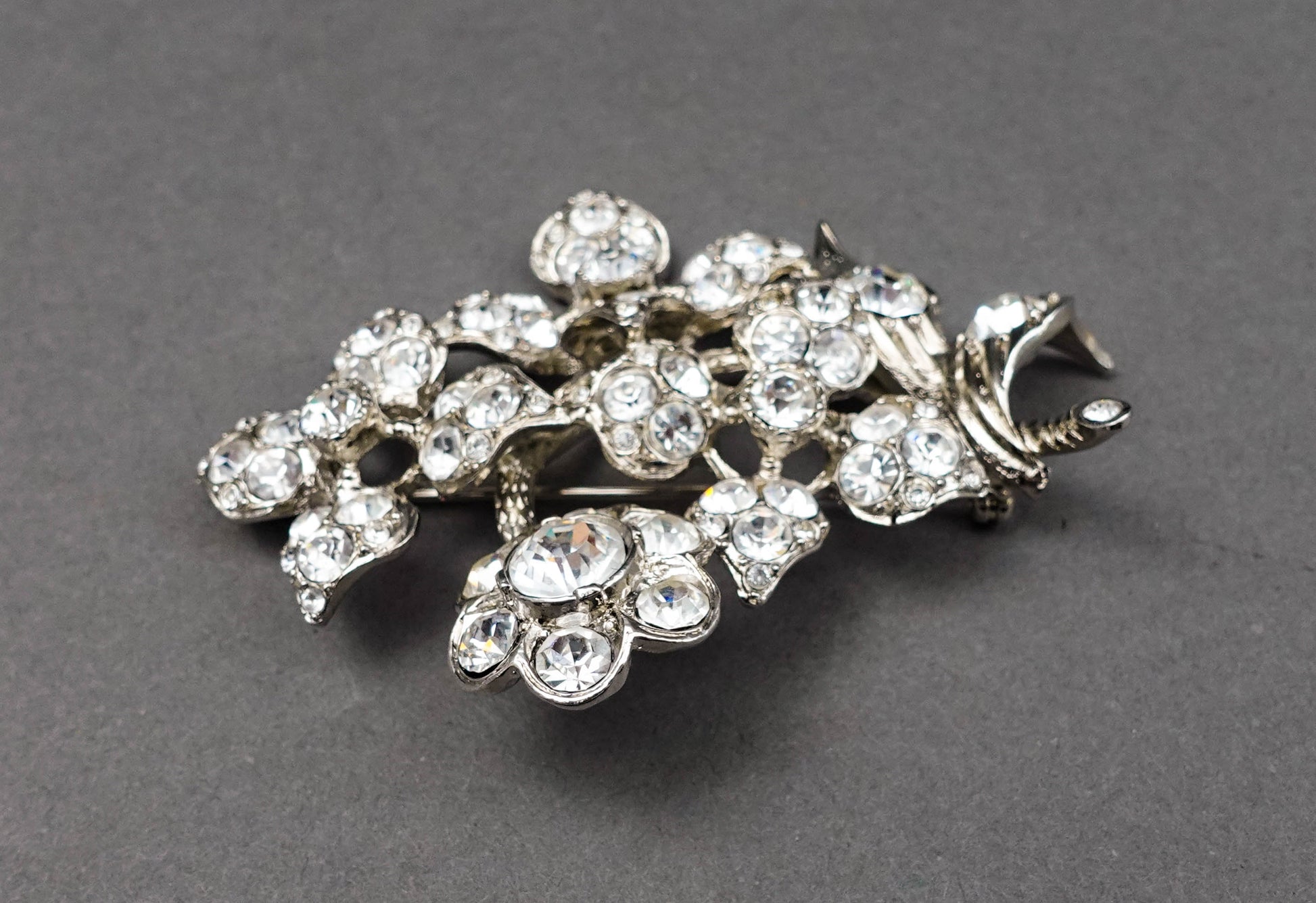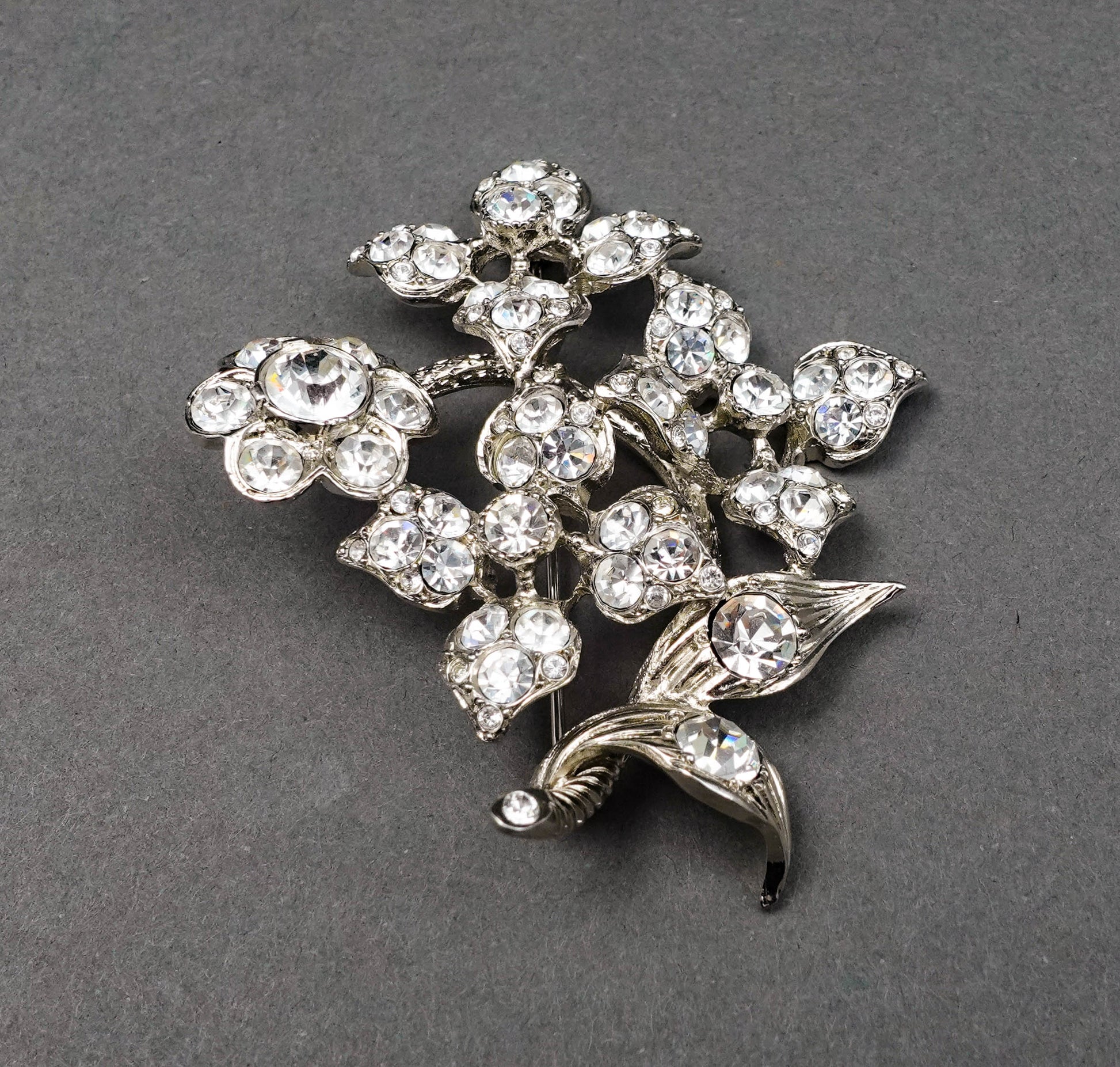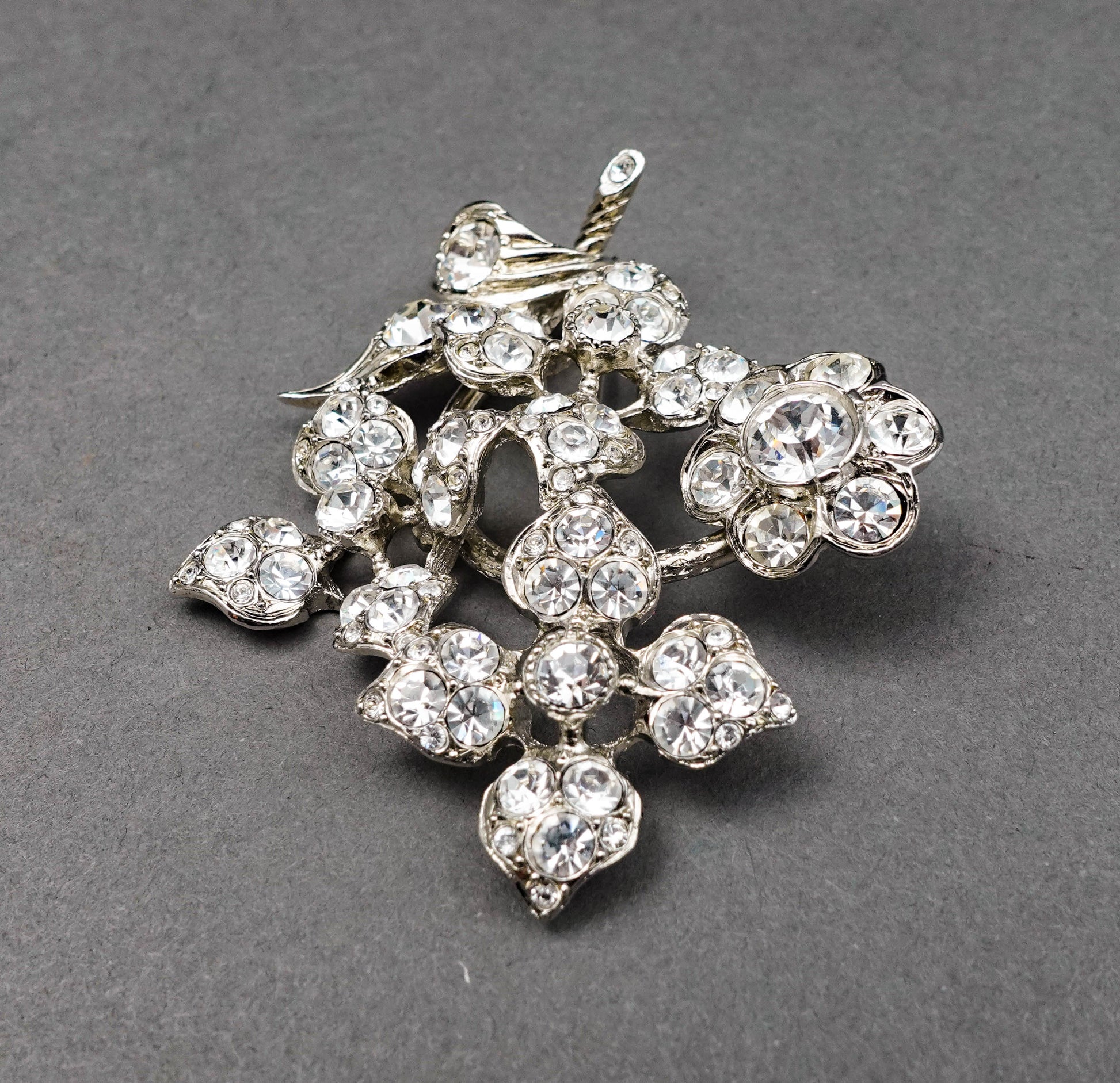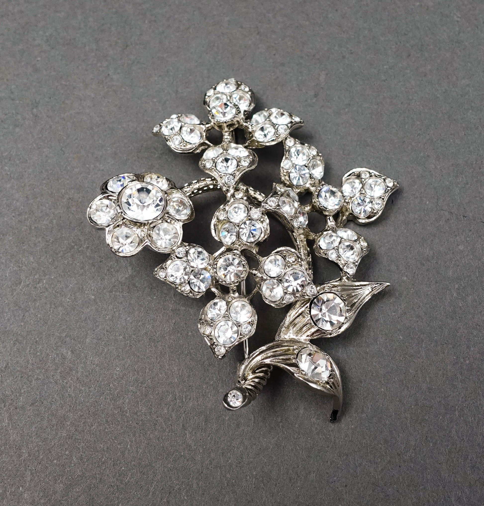 Sonia Rykiel Paris Silvertone Rhinestone Floral Pin Brooch.
