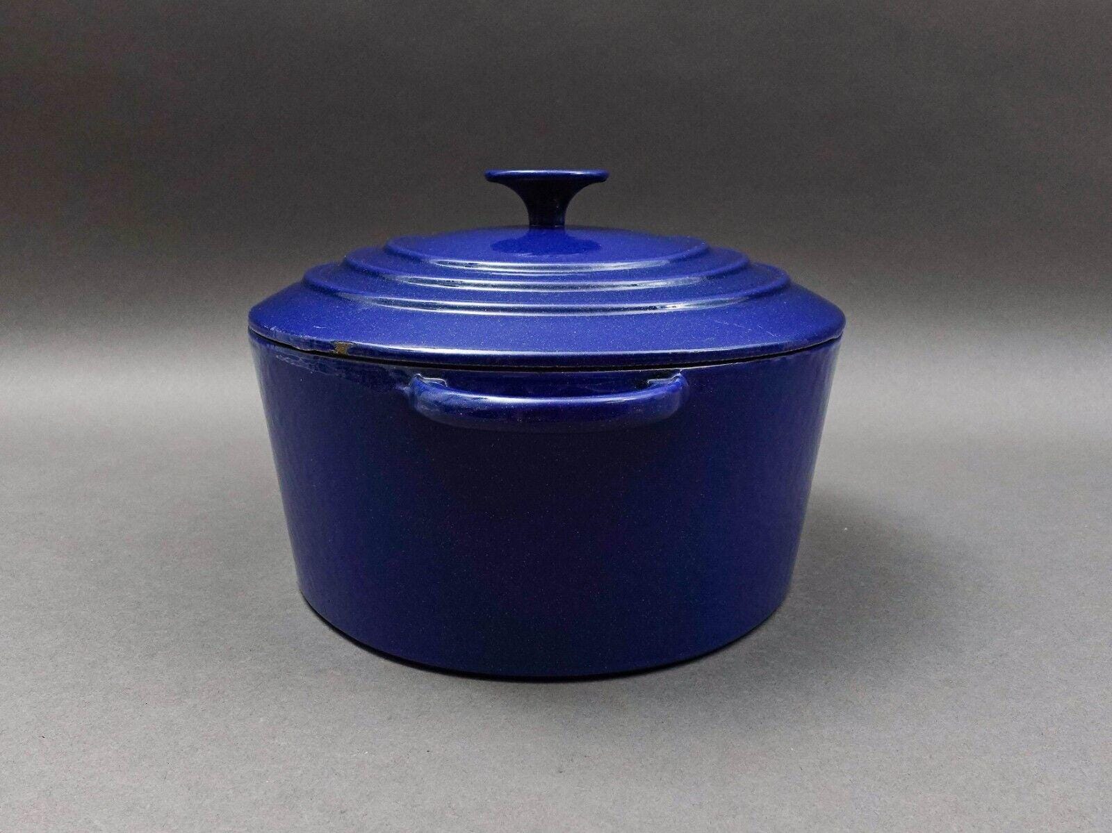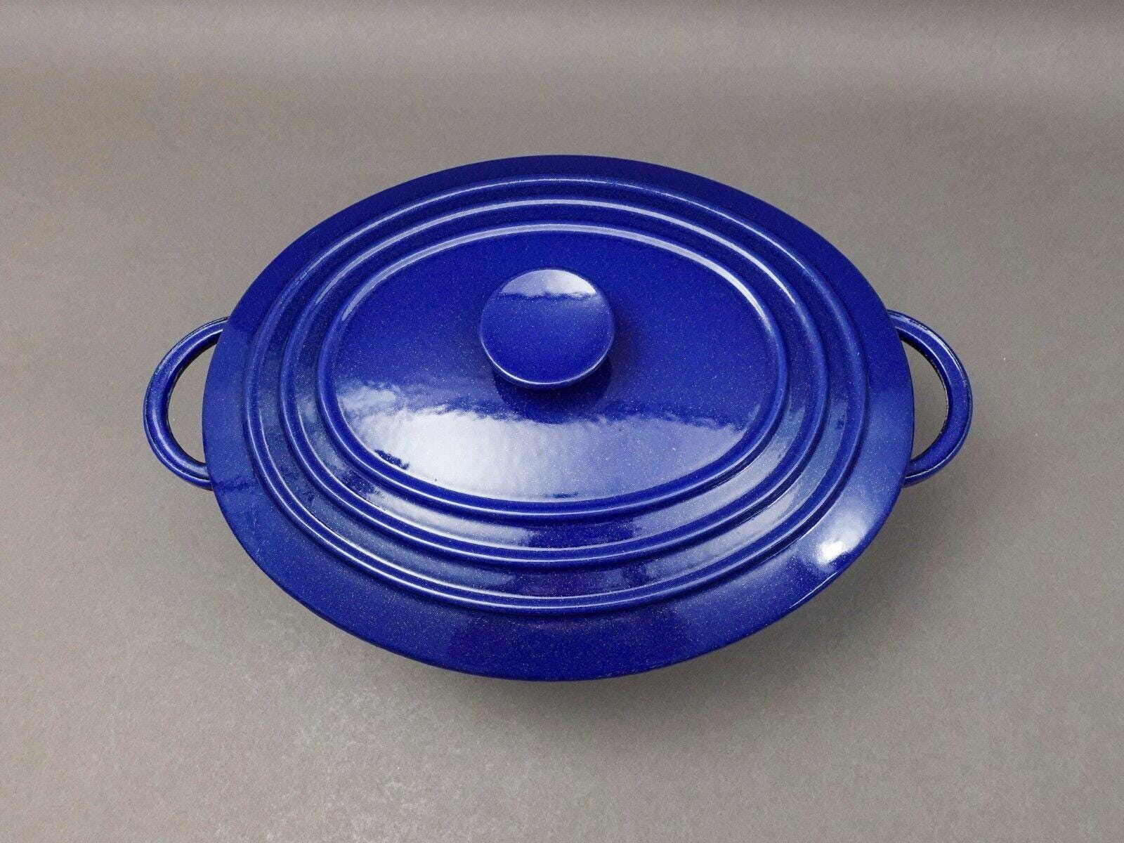 Vintage Staub France Basix #31 Blue Enamel Cast Iron Oval Dutch Oven Casserole 6