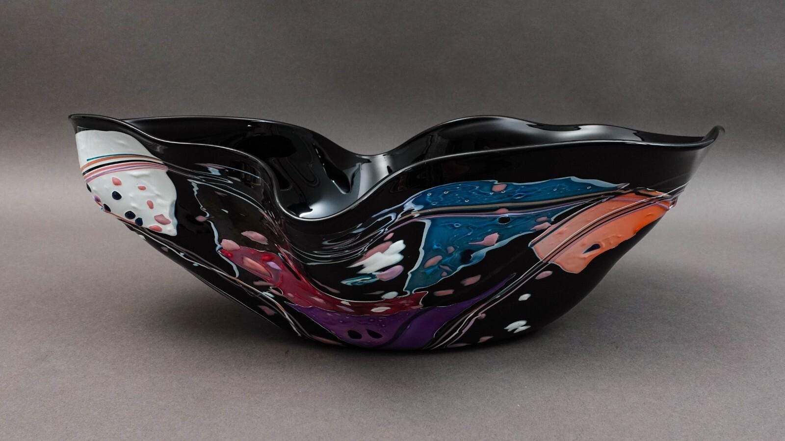 Stephen Nelson 1993 Signed Abstract Studio Art Glass Flute Centerpiece Bowl