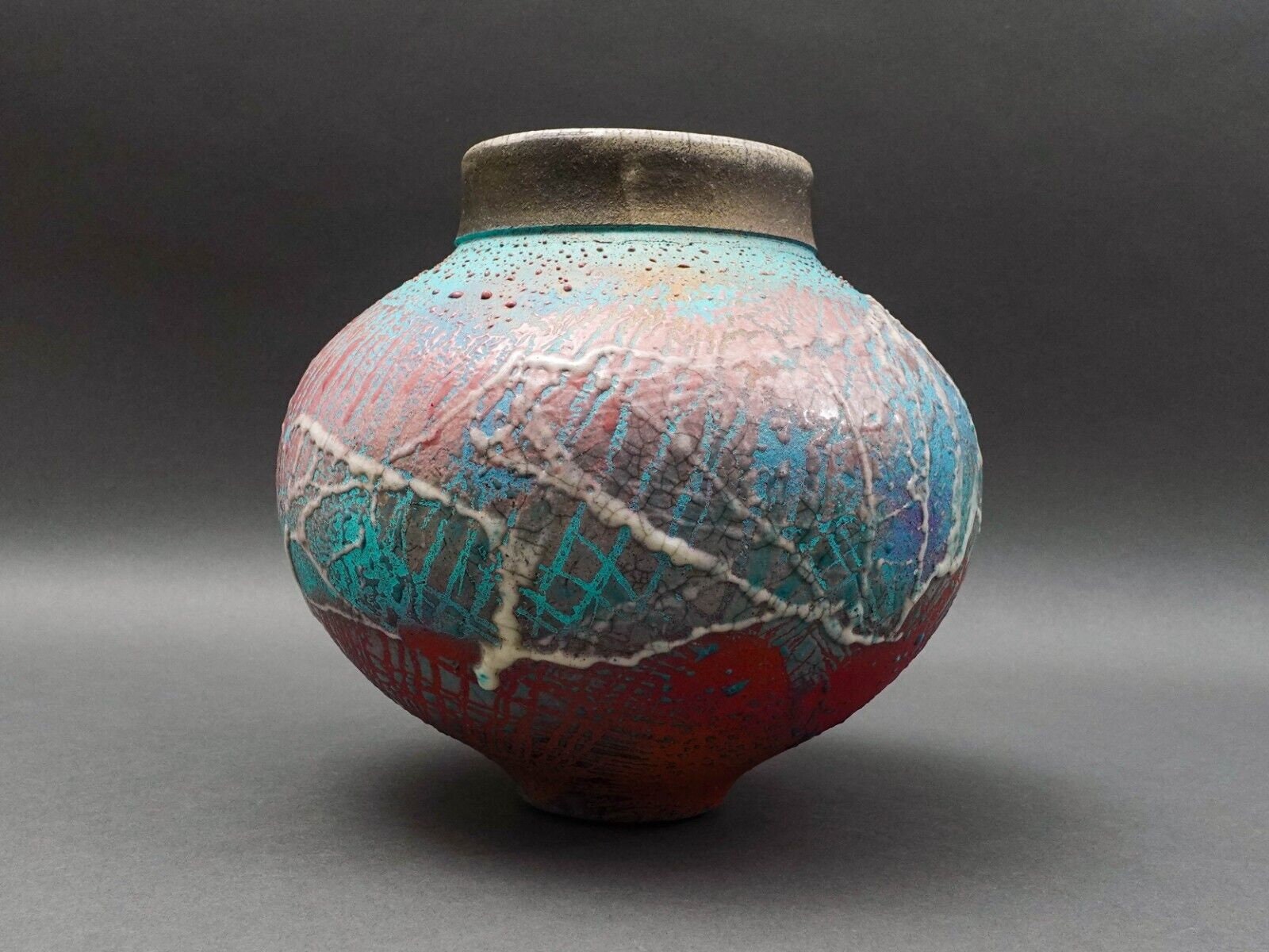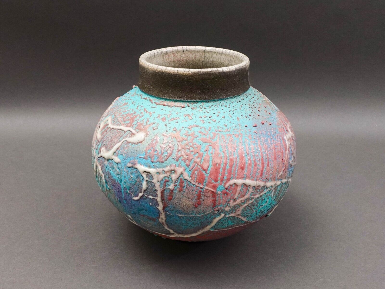 Steven Forbes deSoule 1987 Signed Raku Studio Pottery Urn Vase Sculpture.
