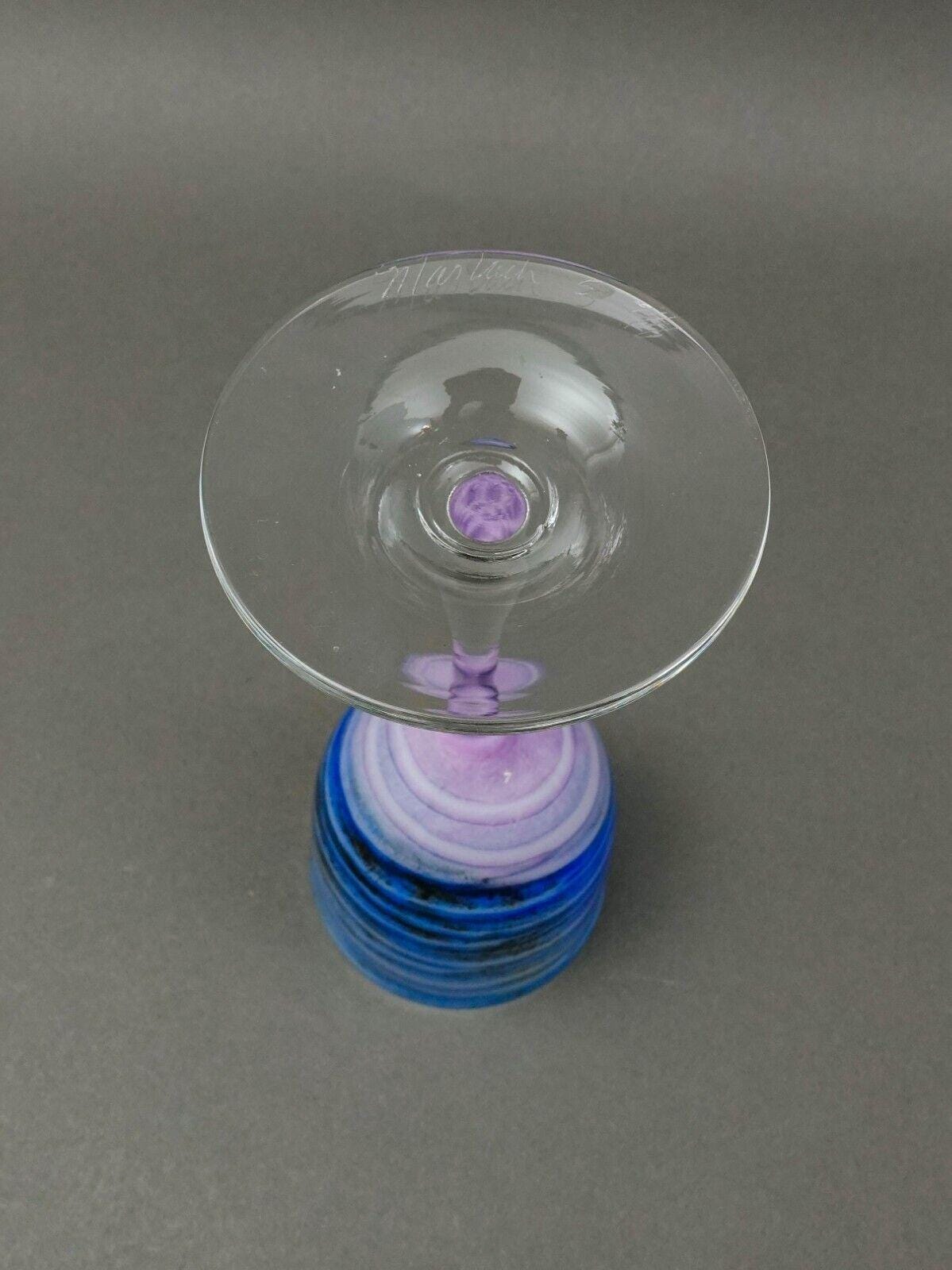 Steven Maslach Signed 1978 Volcano Ash Hand Blown Wine Glass Goblet.Measures approximately 3" diameter, 7 5/8" high.