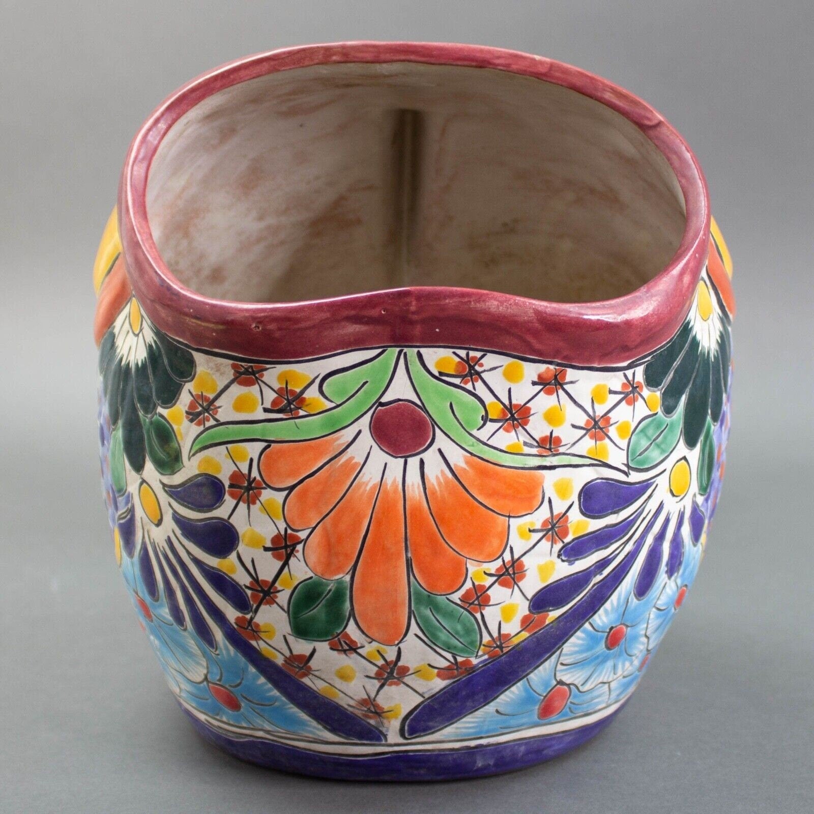 Talavera Pottery Mexican Folk Art Colorful Fish Pot Planter.