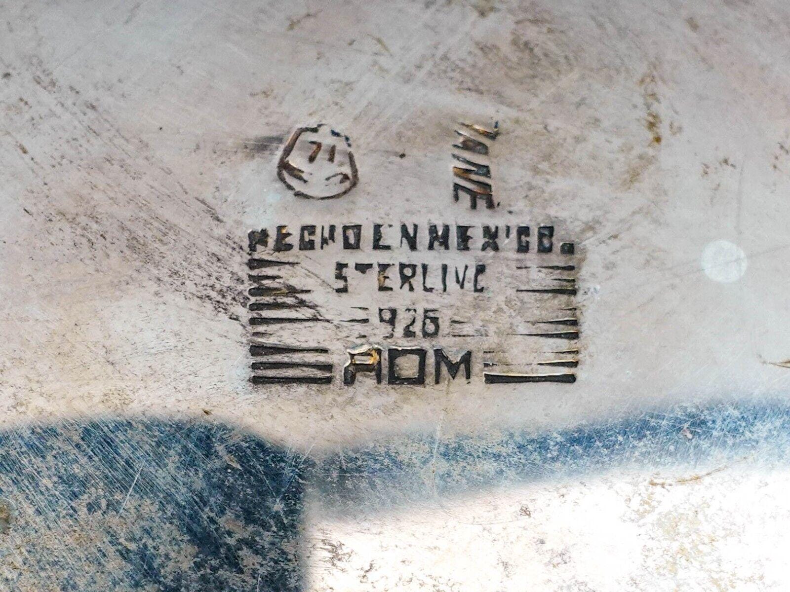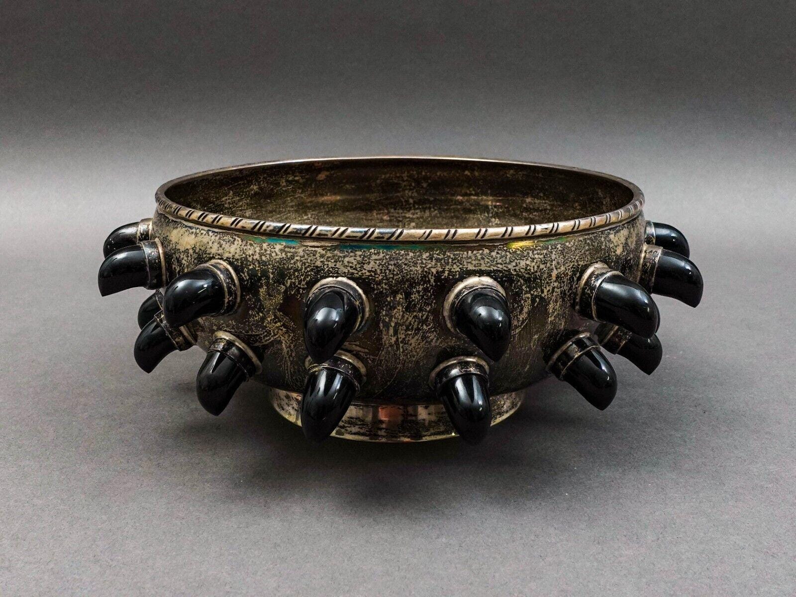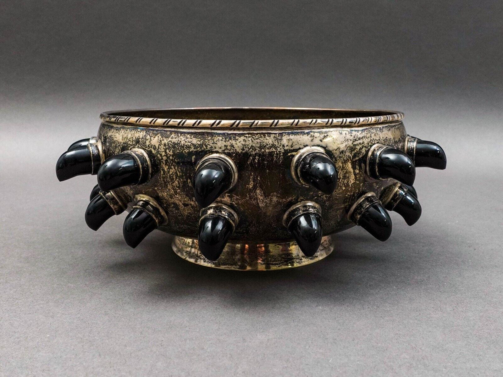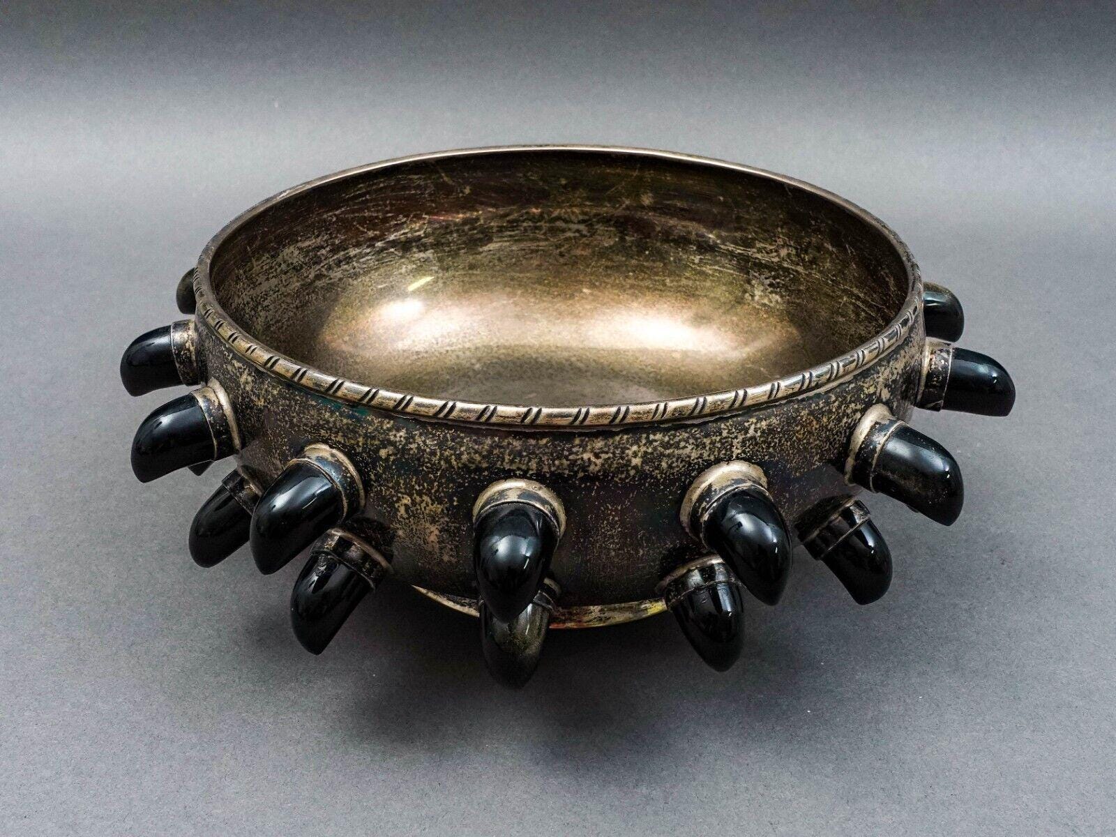 Tane Mexico Mid Century Modern Sterling Silver Carved Obsidian Centerpiece Bowl