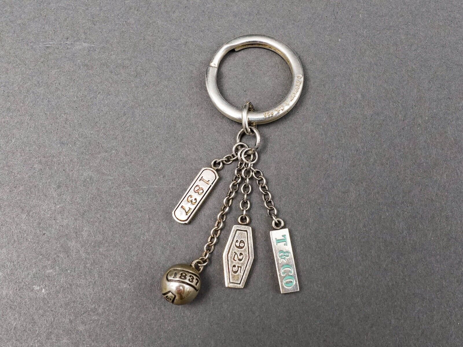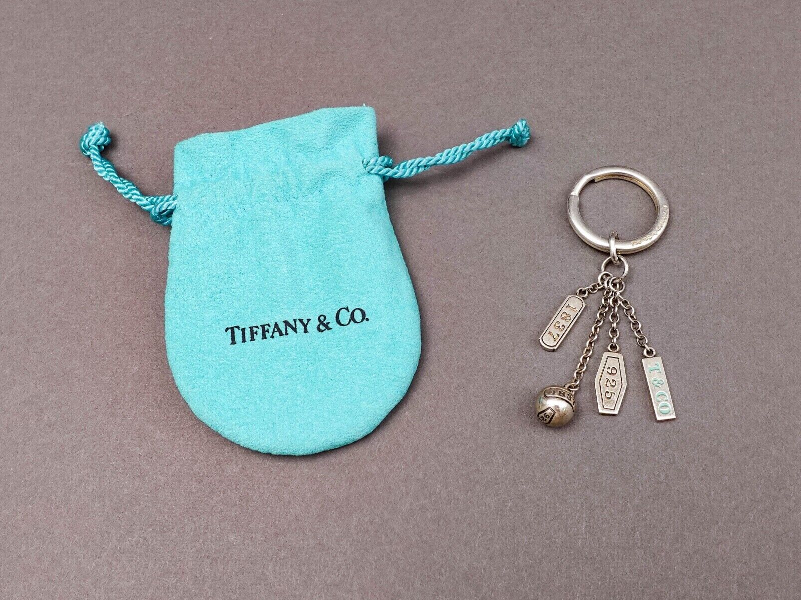 Tiffany & Co. 1837 Sterling Silver Dangle 4 Charm Key Ring Keychain With Pouch