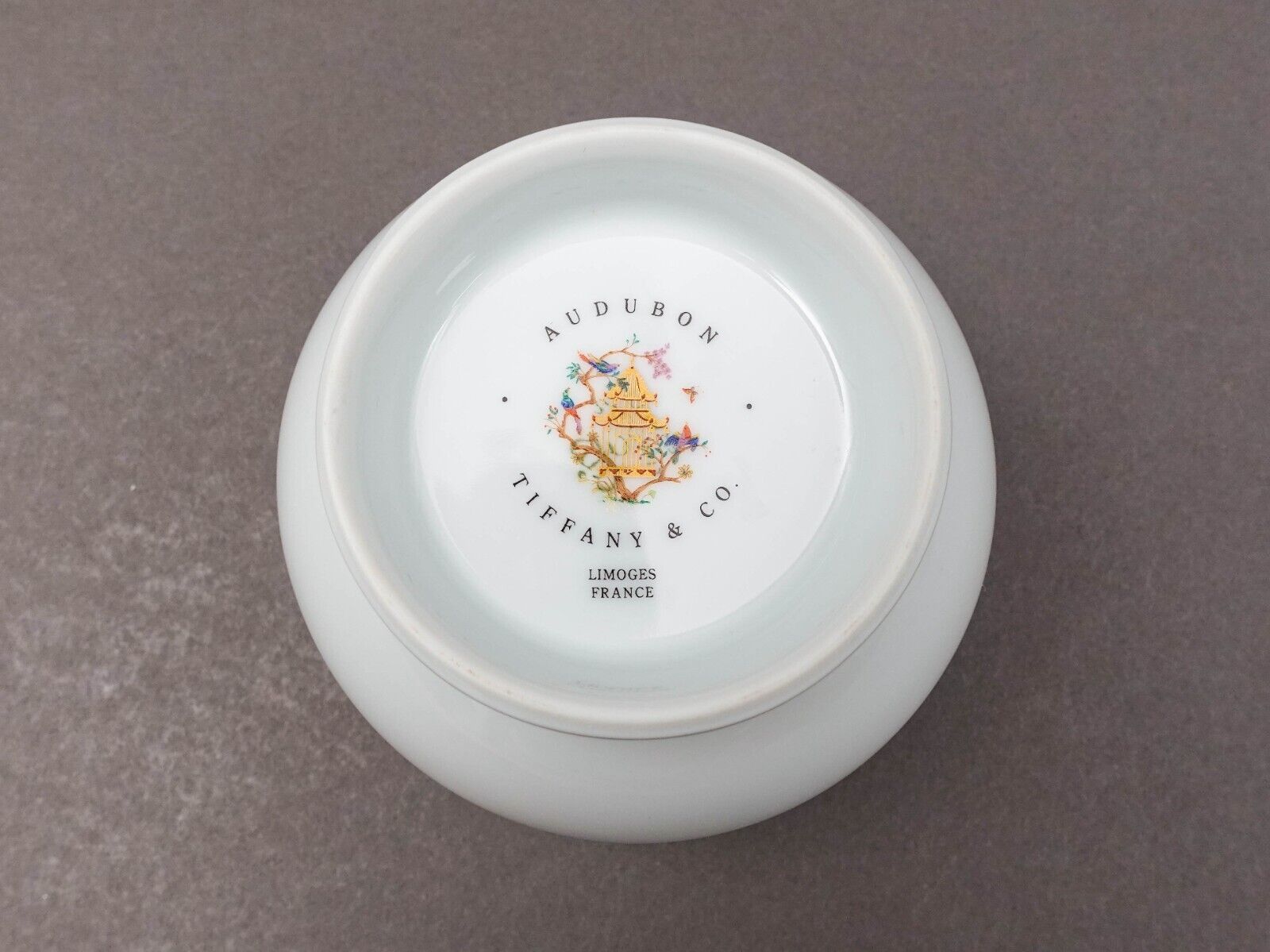 Tiffany & Co Audubon Limoges France Porcelain Sugar Bowl.Measures approximately 4" diameter, 5 1/4" high.Excellent pre-owned condition. Item is being sold as found. No chips, cracks or