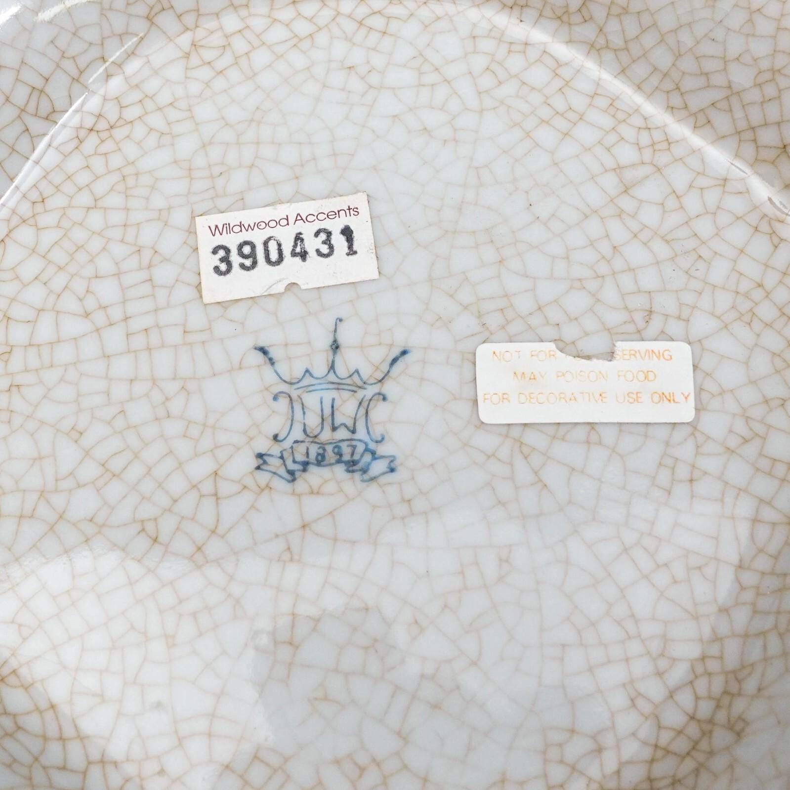 United Wilson UW 1897 Crackle Hand Painted Floral Bronze & Porcelain Vase.Measures approximately 11" long, 9 7/8" wide, 12 3/4" high.Excellent pre-owned condition. Item is being sold as found. No chips, cracks or