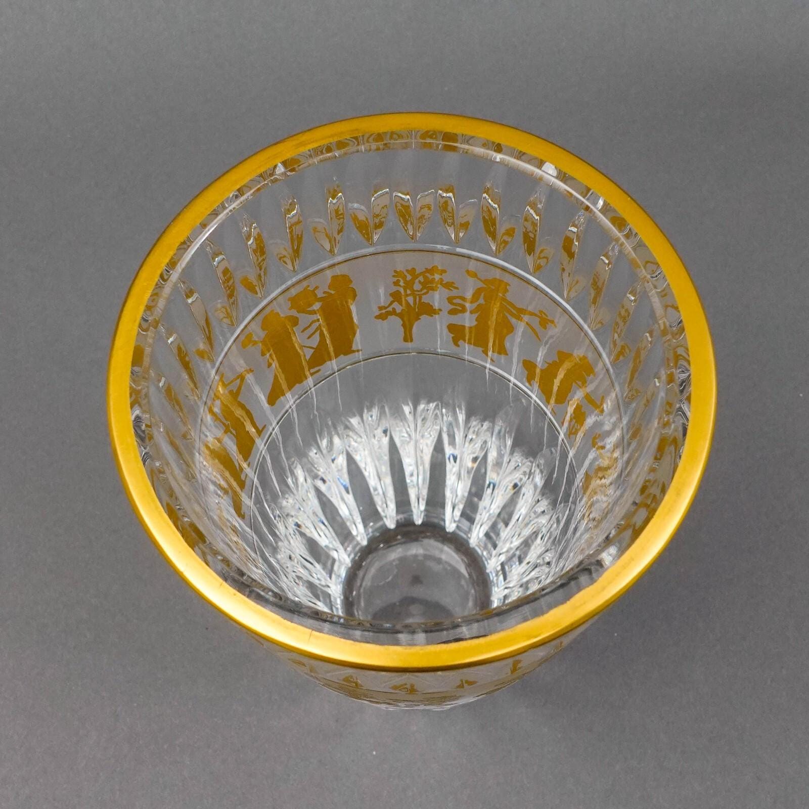 Val St Lambert Signed Danse De Flore Gold Gilt Cut Crystal Vase 9"