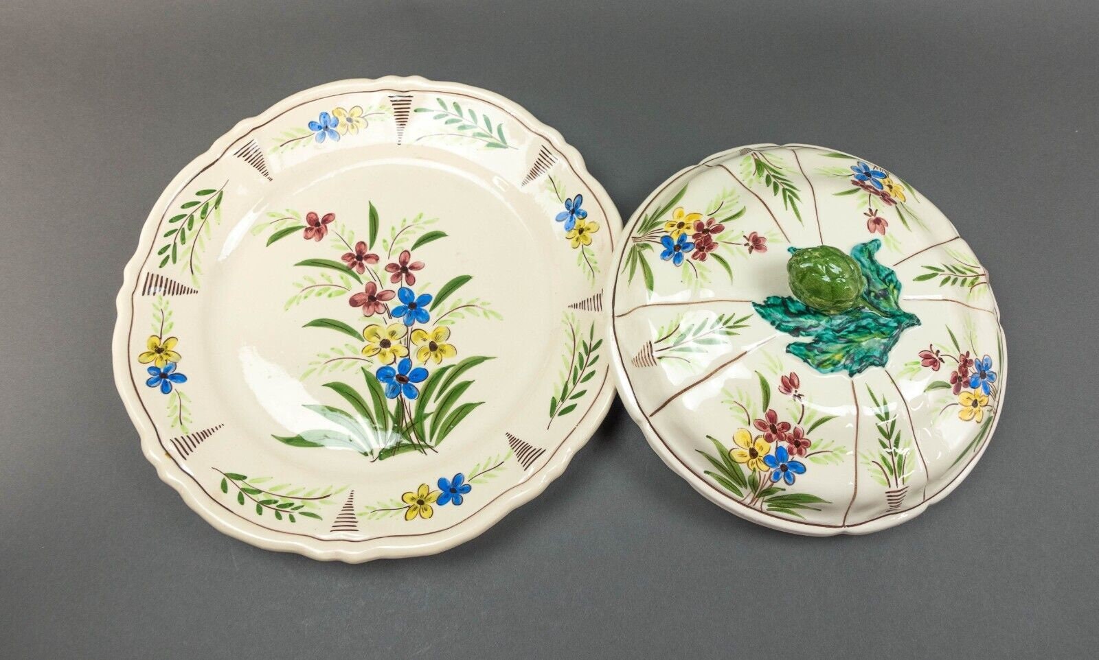 Vallauris French Fait Main Floral Artichocke Lidded Serving Platter Tray Pottery