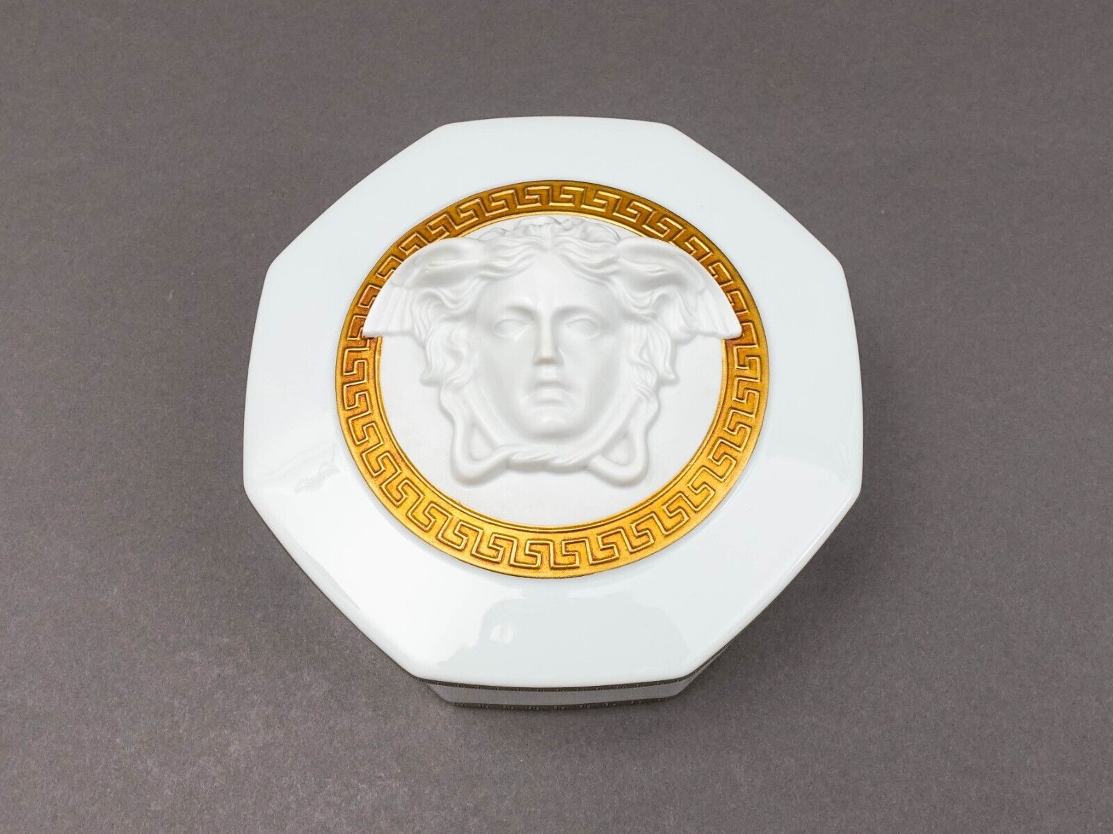 Versace Rosenthal Germany Gorgona Medusa Gold Greek Key White Porcelain Candy