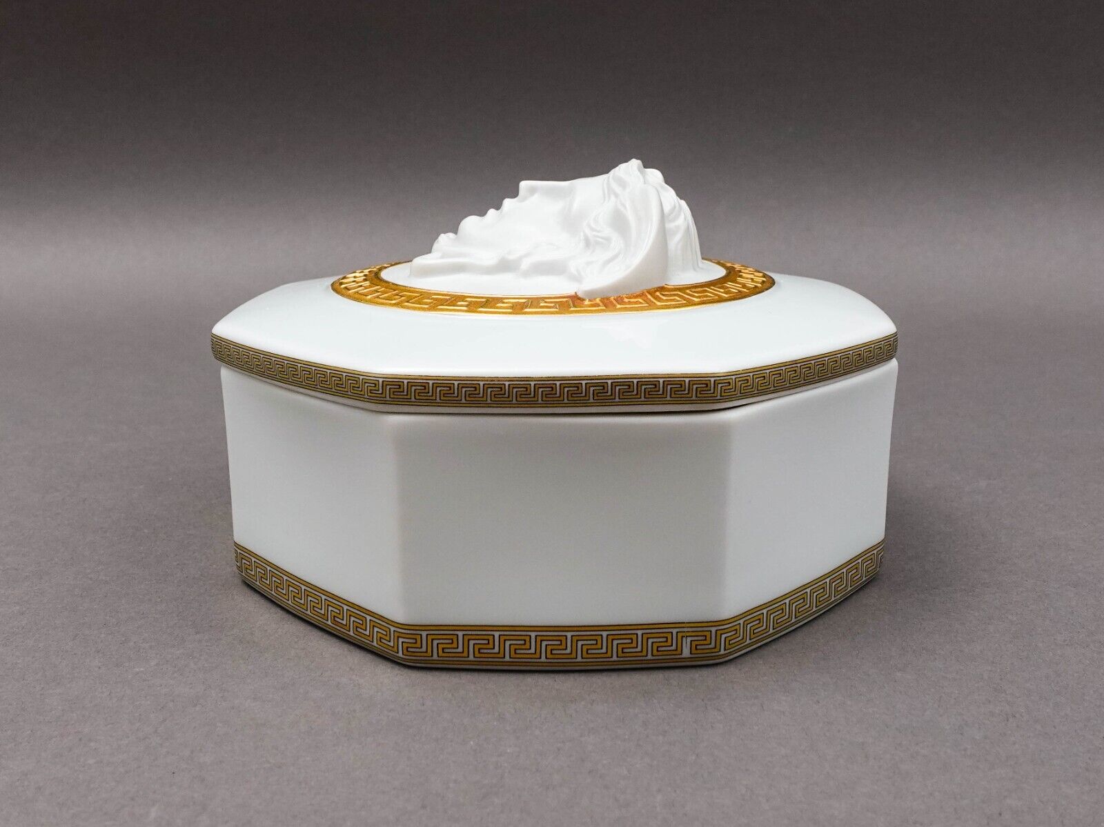 Versace Rosenthal Gorgona Medusa Gold Greek Key Porcelain Trinket Jewlery Box