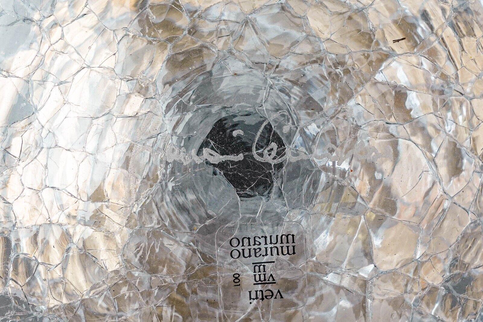 Vetri Murano Italy Signed Flared Sterling Silver Rim Crackle Glass Vase.Measures approximately 12 1/2" diameter, 12" high.Great pre-owned condition. Item is being sold as found. No chips, cracks or