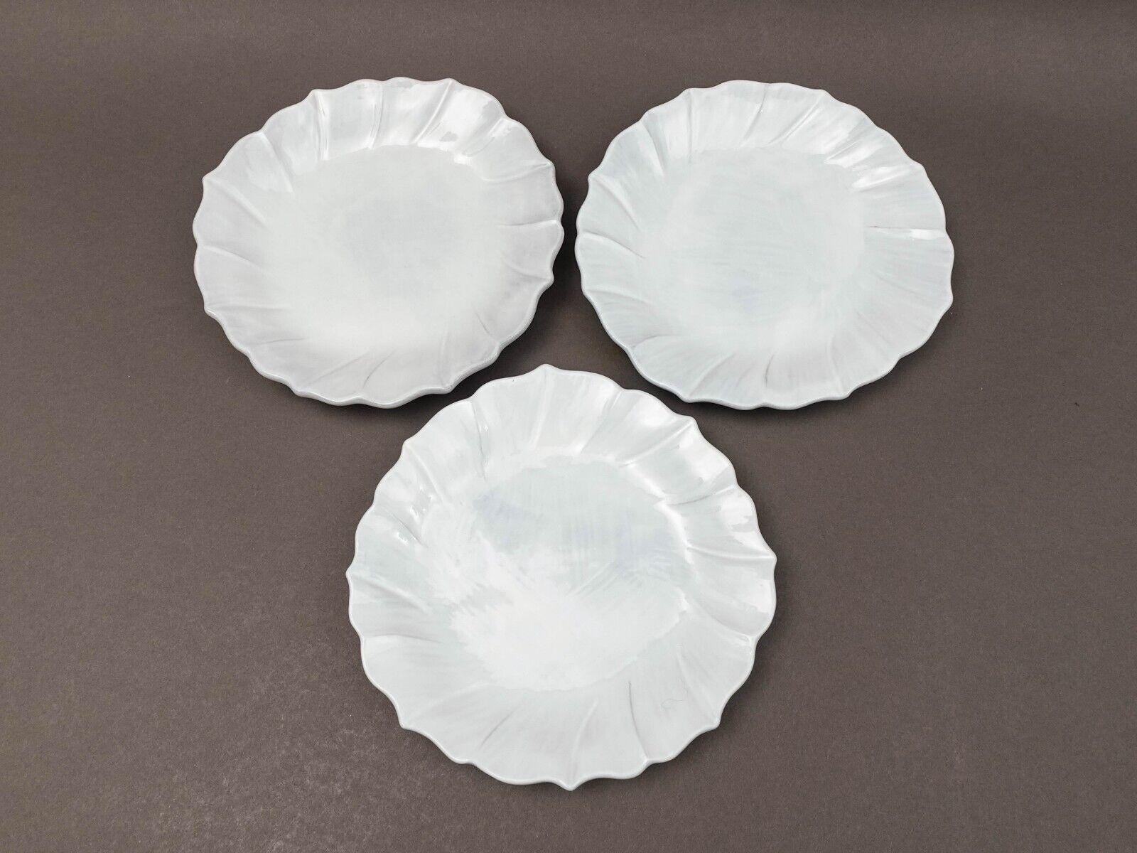 Vietri Italy Incanto Ruffle White Salad Plate Set Of 3.Measures approximately 8 1/4" diameter, 7/8" high.Great pre-owned condition. Item is being sold as found. No chips, cracks or