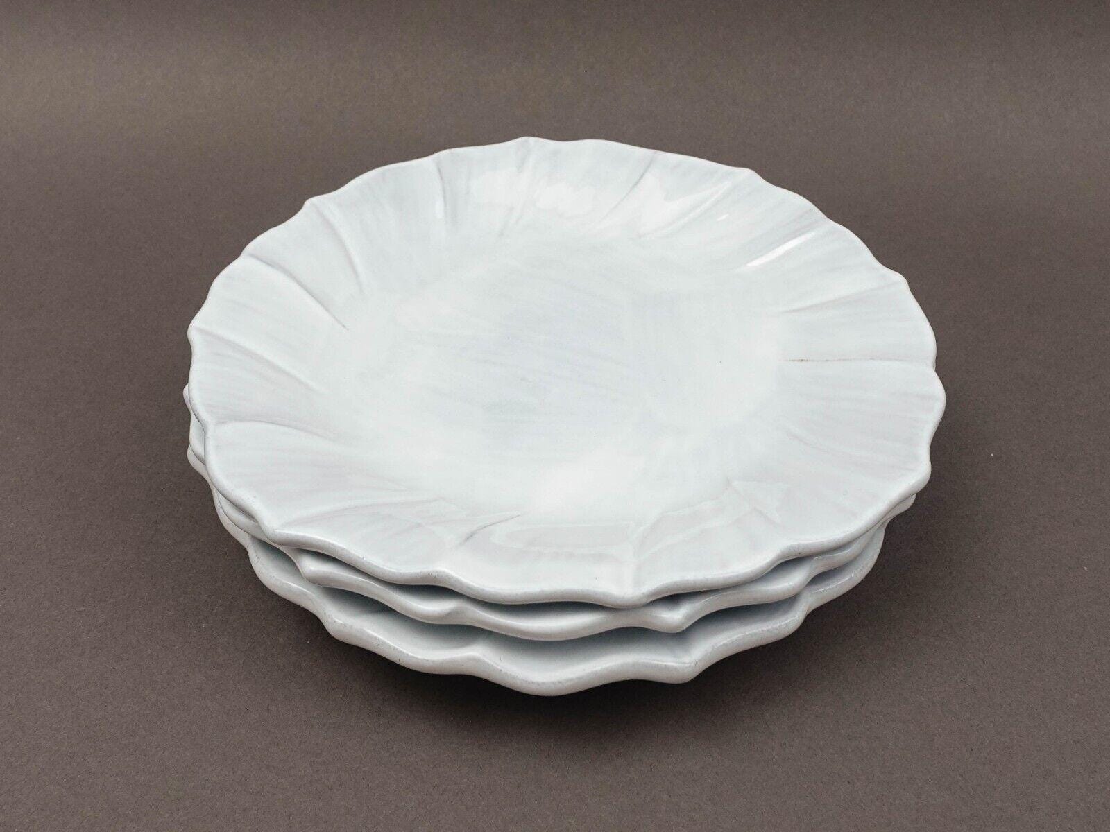 Vietri Italy Incanto Ruffle White Gray 8 1/4" Salad Plate Set Of 3