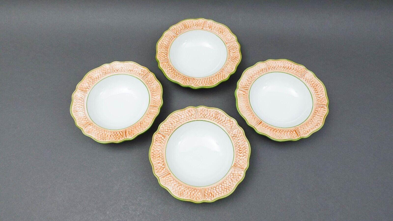 Vietri Italy Oasi Oasis Palm Tree Scales Rimmed Soup Cereal Bowl Set Of 4.Measures approximately 7 1/2" diameter, 1 5/8" high.