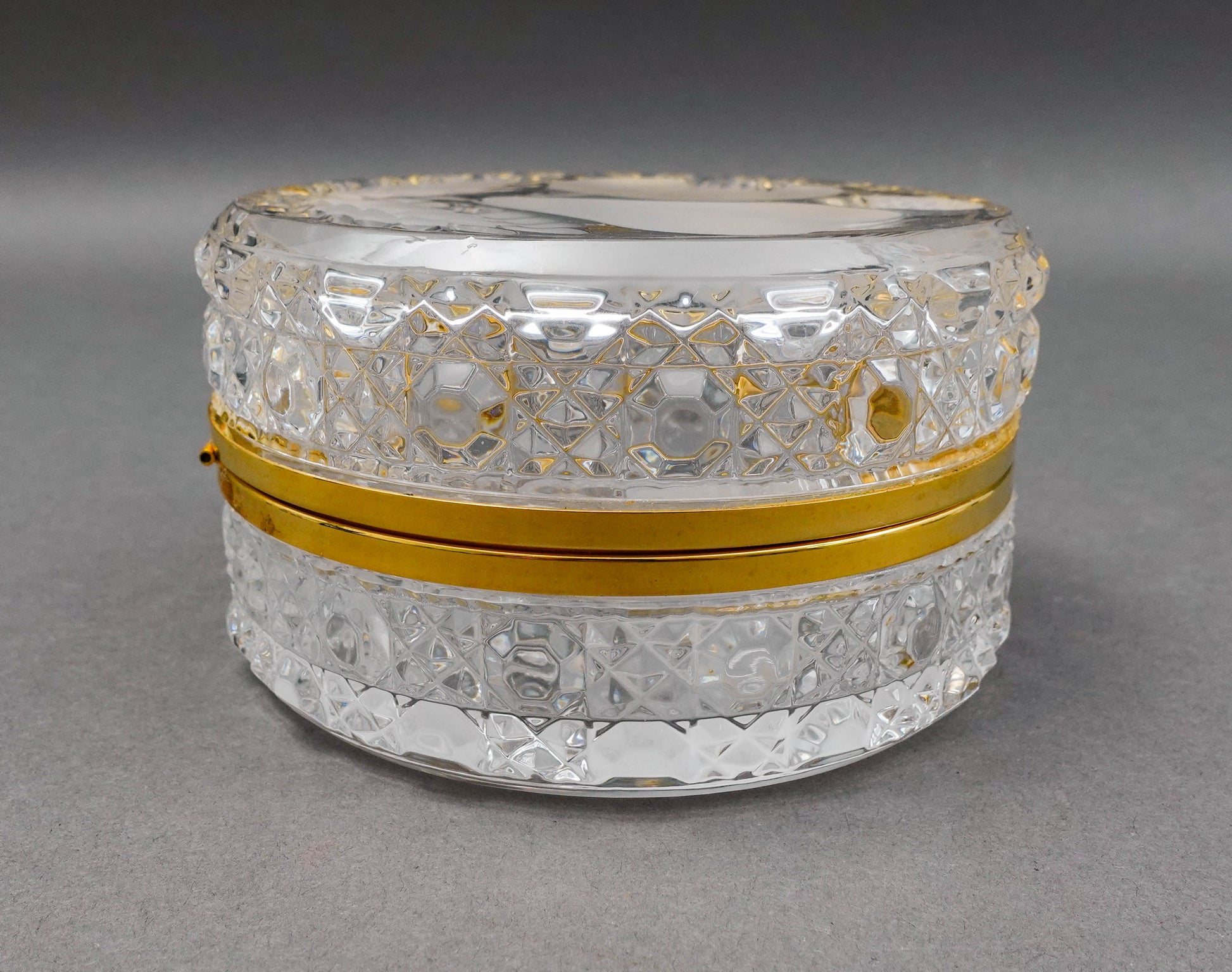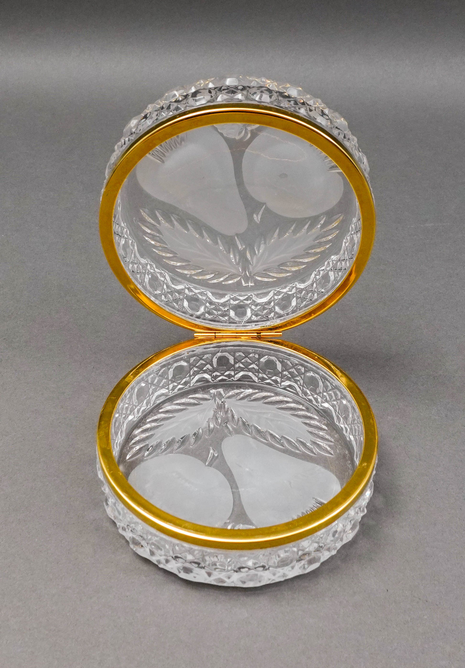 Vintage Cut Crystal Glass Round Dresser Trinket Jewelry Hinged Box Casket Fruits.