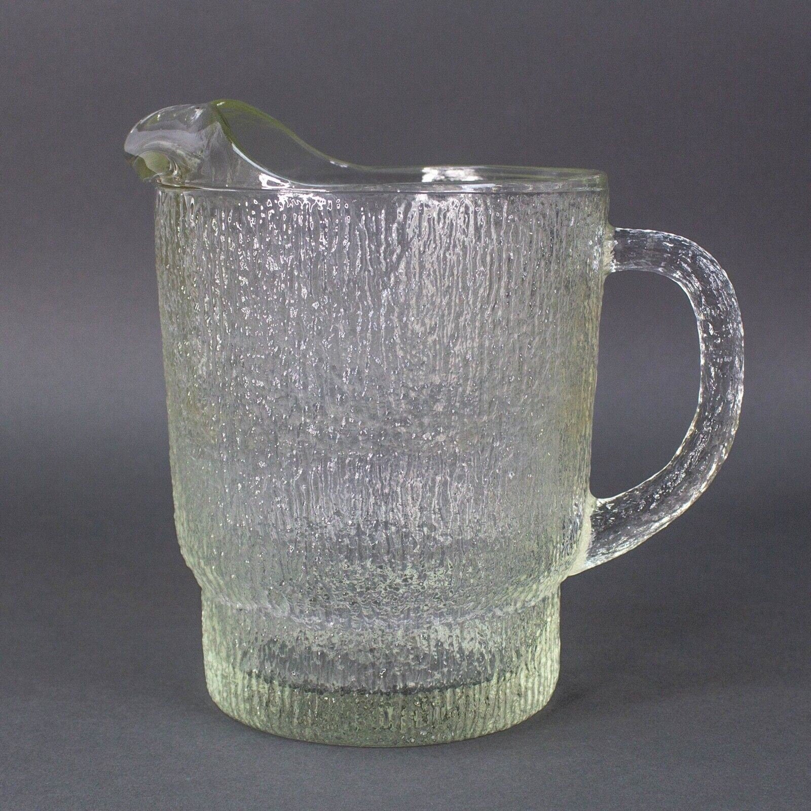 Vintage Indiana Glass Crystal Icicle Ice Frost Tree Bark Textured 64 oz Pitcher.