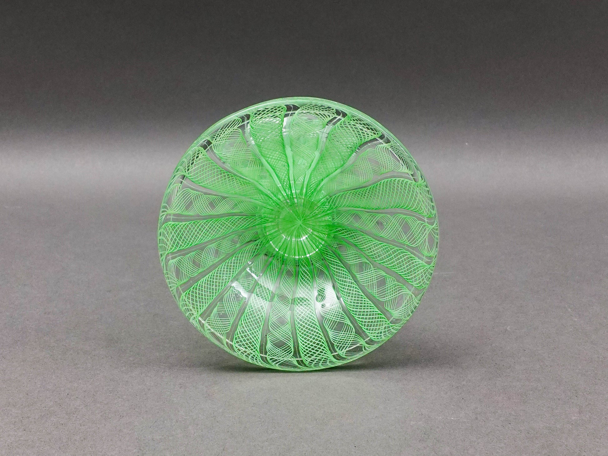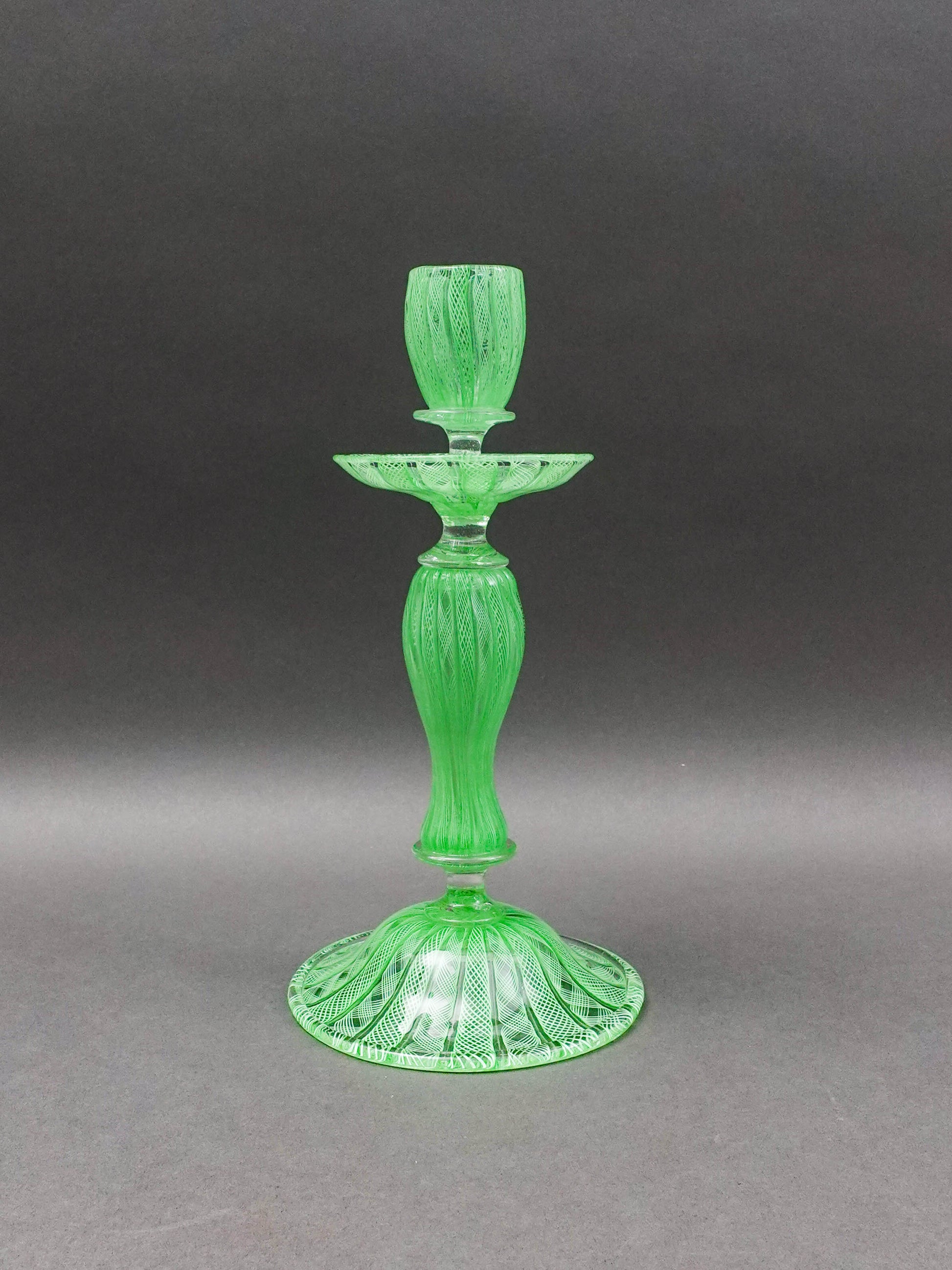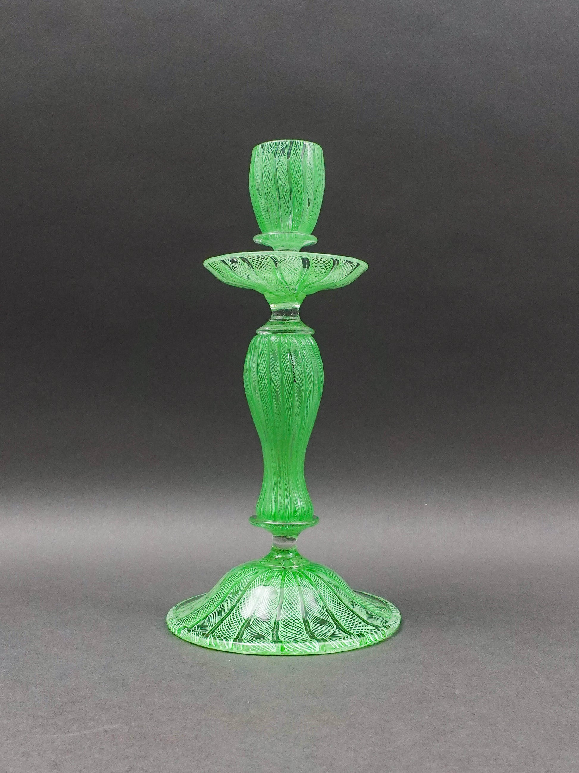 Vintage Italian Murano Green Latticino Art Glass Candlestick Candle Holder.