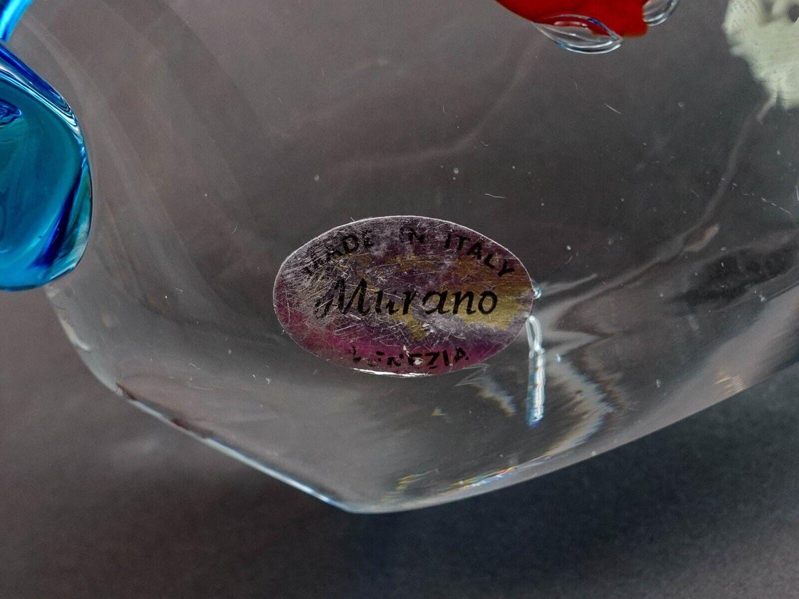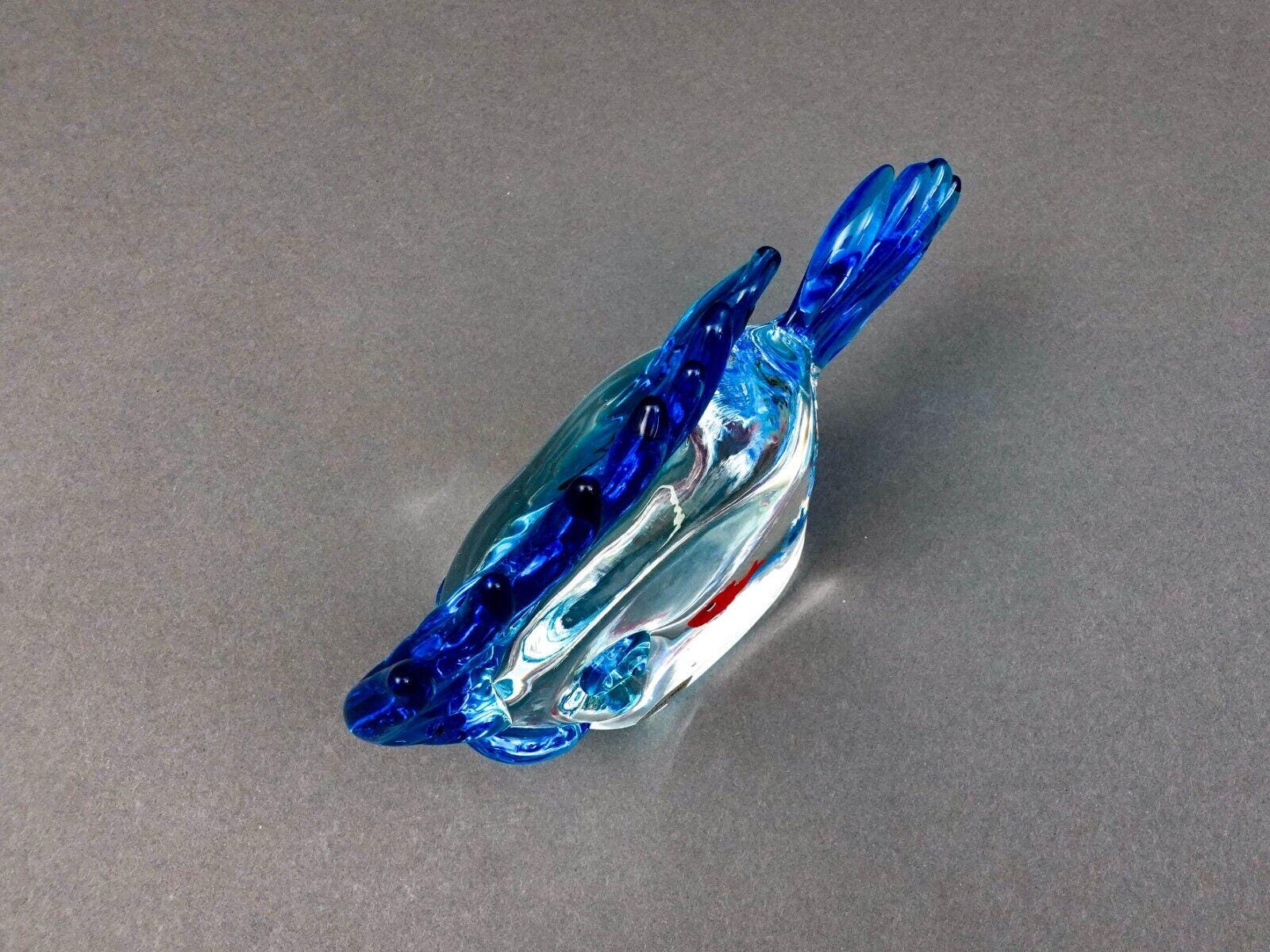 Vintage Murano Italy Blue Fish Red Goldfish Aquarium Glass Figurine Sculpture.