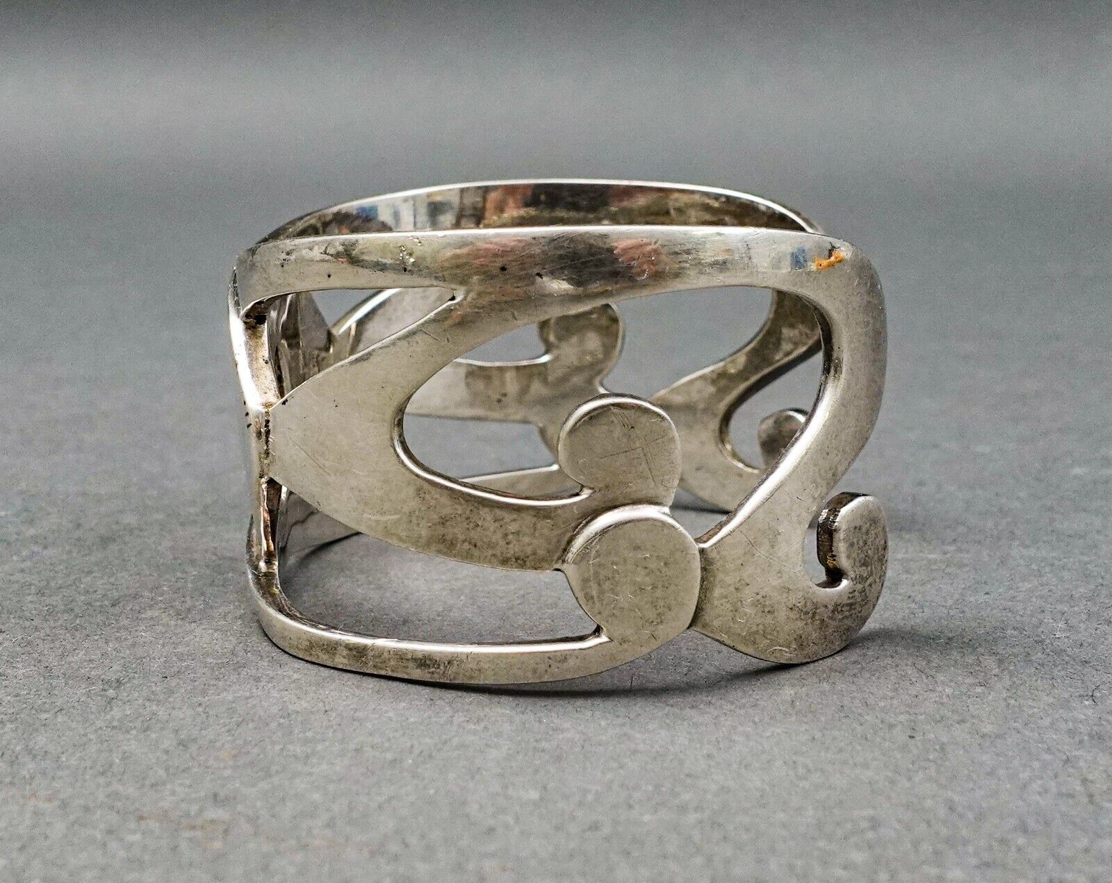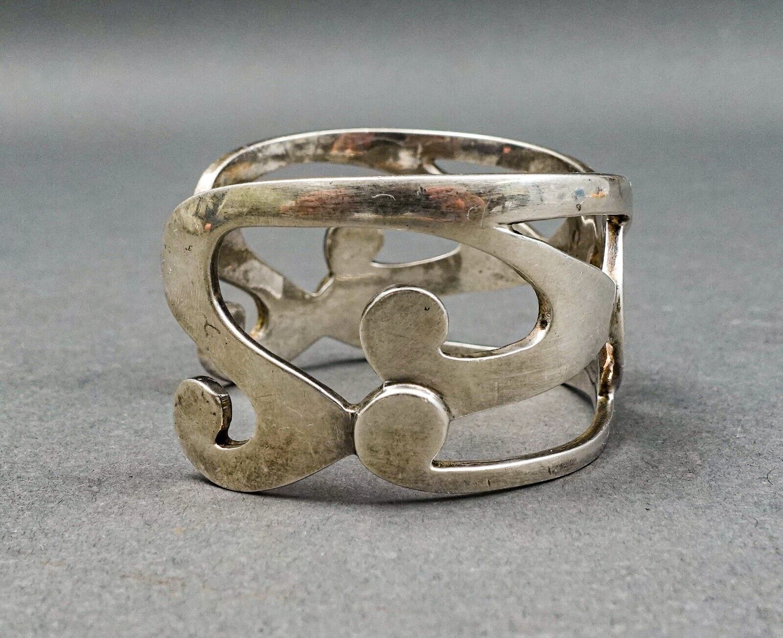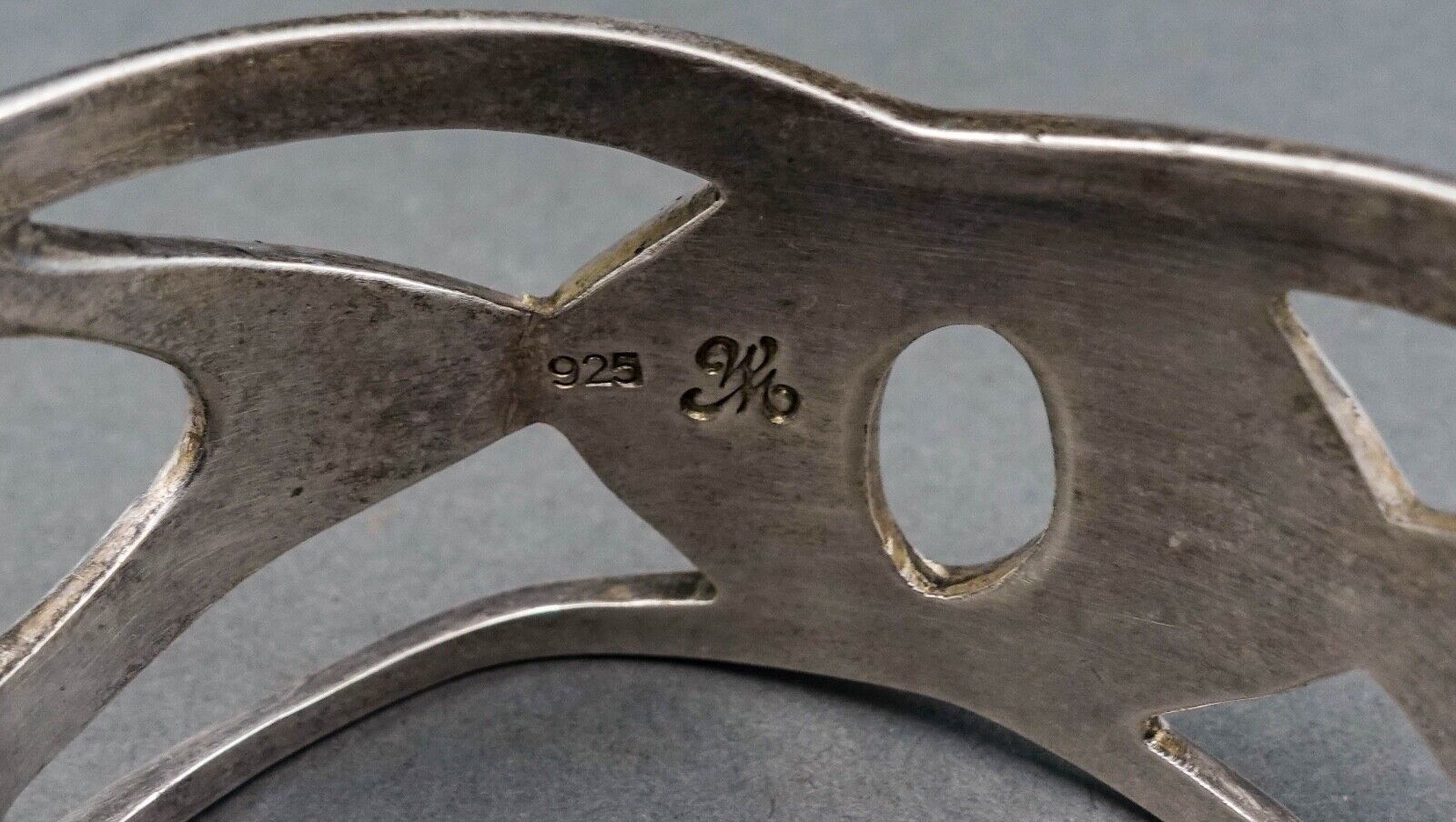 Vintage WM Signed .925 Sterling Silver Modernist Heavy Wide Cuff Bracelet