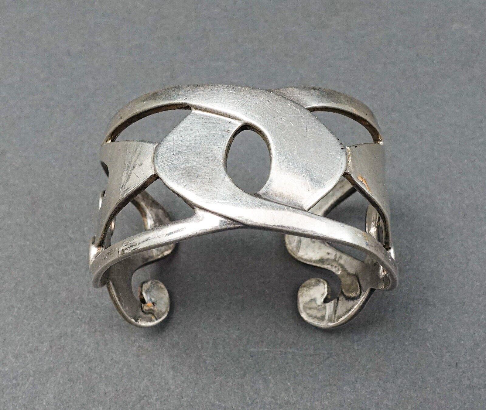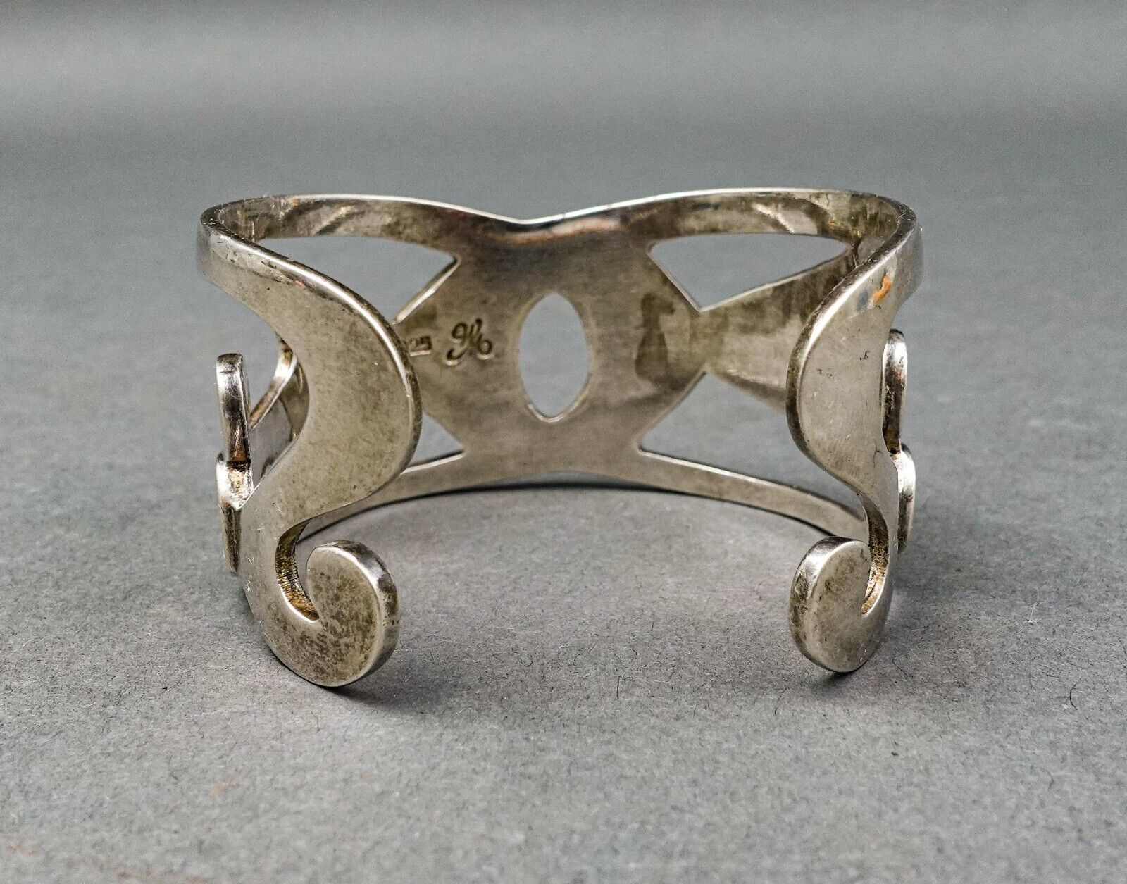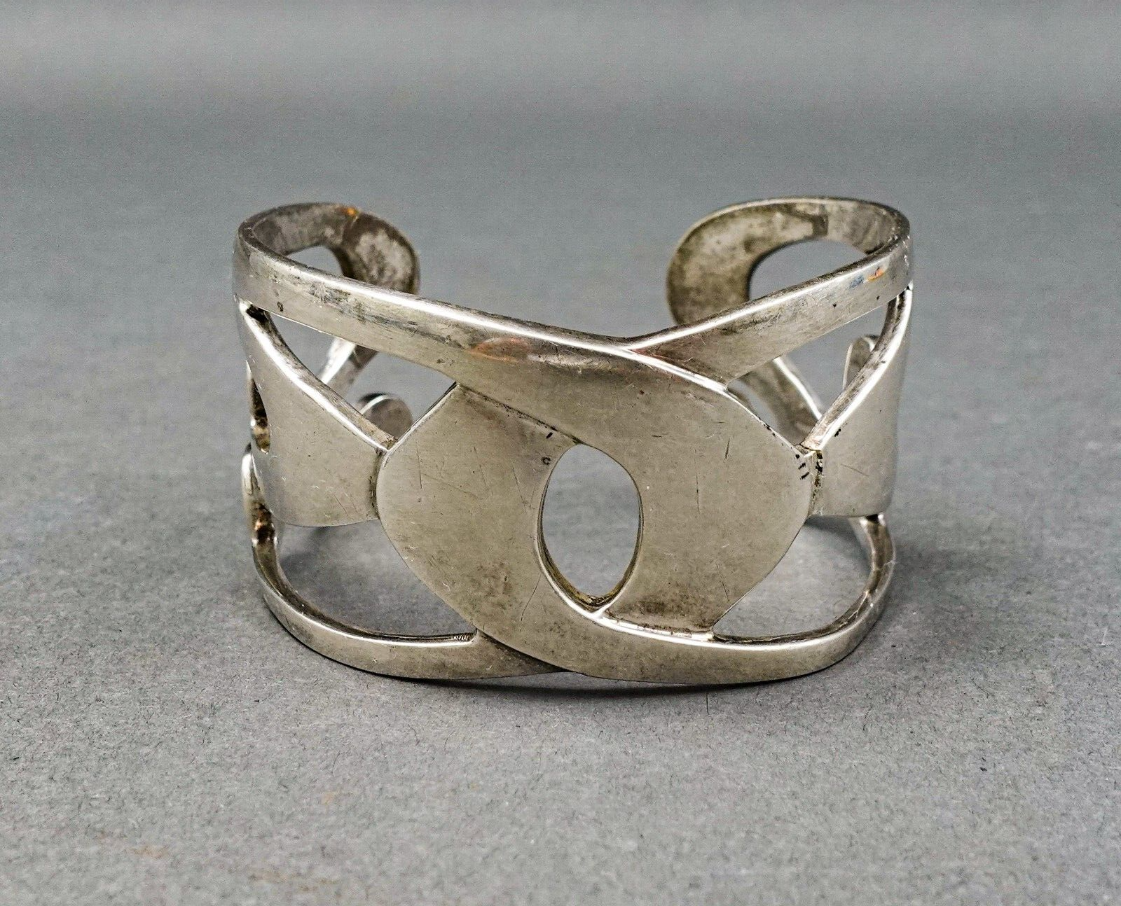 Vintage WM Signed .925 Sterling Silver Modernist Heavy Wide Cuff Bracelet