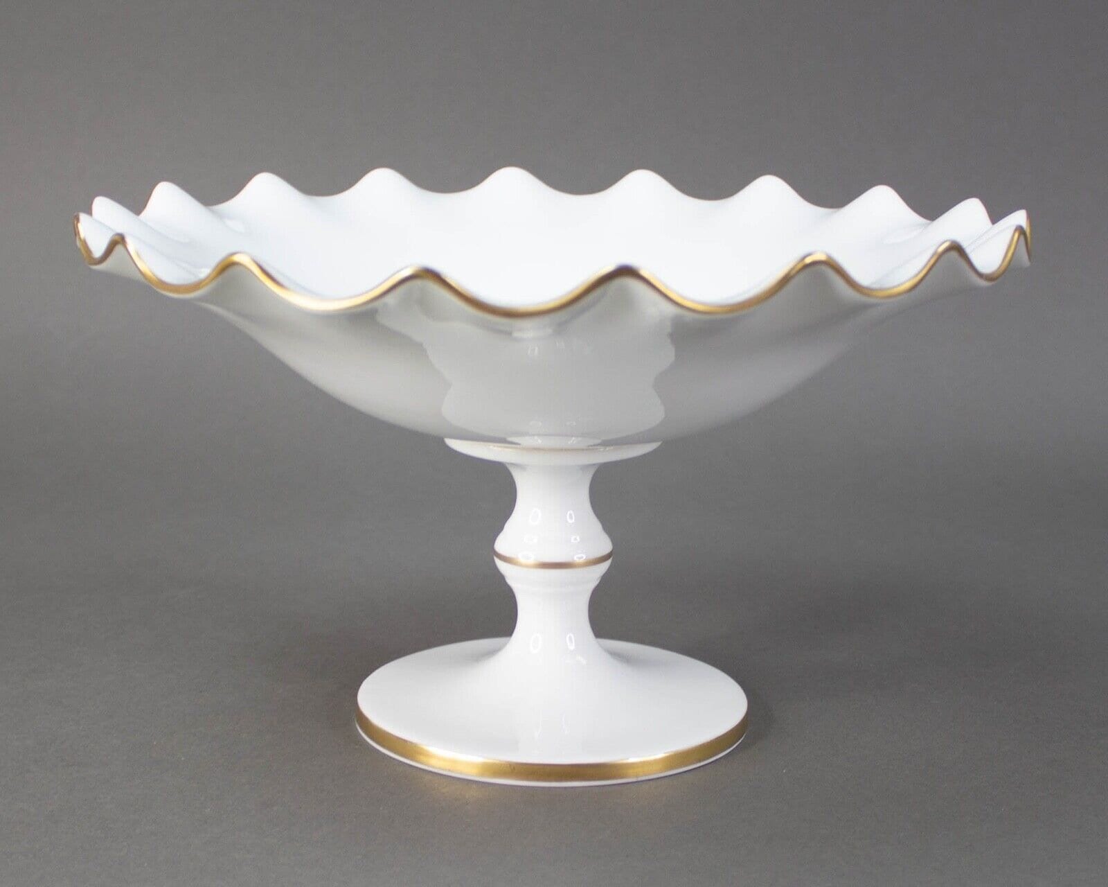 Vista Alegre VA Portugal Ruffled Gold Trim Footed Pedestal Bowl Compote 9 1/4"