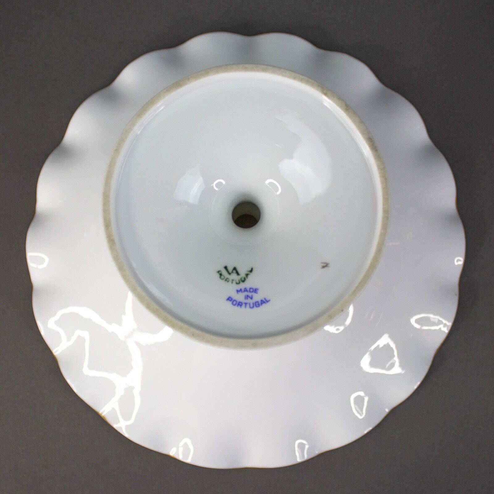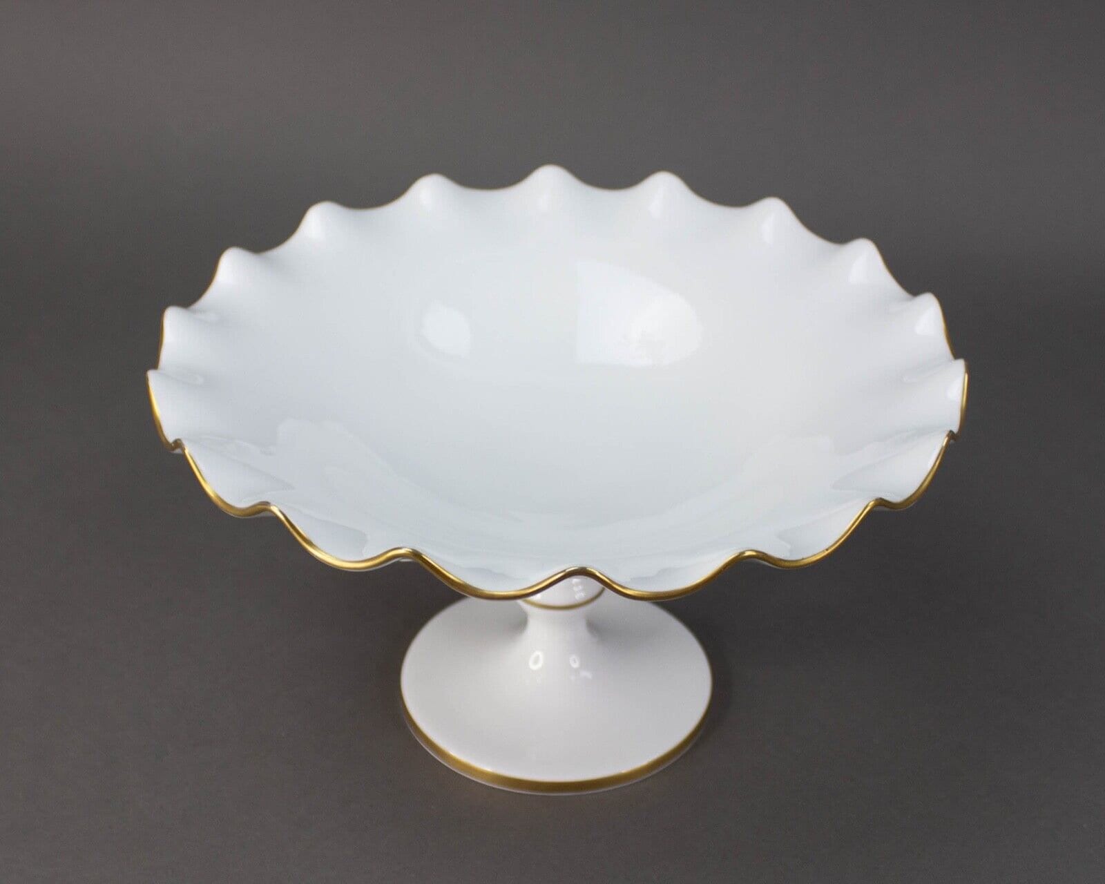 Vista Alegre VA Portugal Ruffled Gold Trim Footed Pedestal Centerpiece Bowl Compote. Measures 9 1/2" Diameter, 5 3/8" High.ShippingShips by USPS, UPS or FedEx unless otherwise directed. About UsAll items are handled with care and packaged with only the best materials. We use all new materials such as bubble wrap, peanuts, wrapping paper, foam sheets, corrugated paper, stretch wrap, labels and boxes. Contact UsYou can email me personally if you have any questions.
