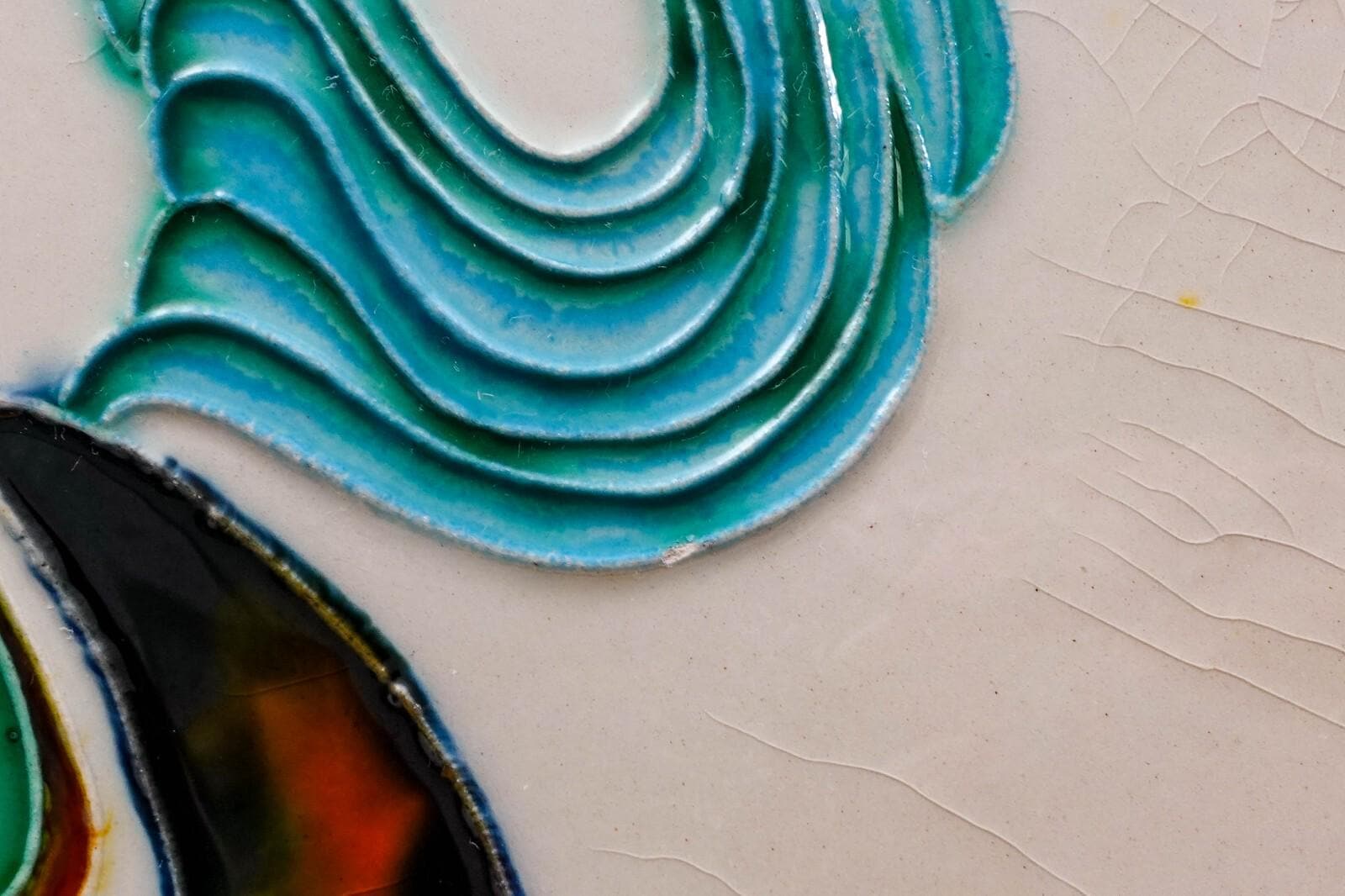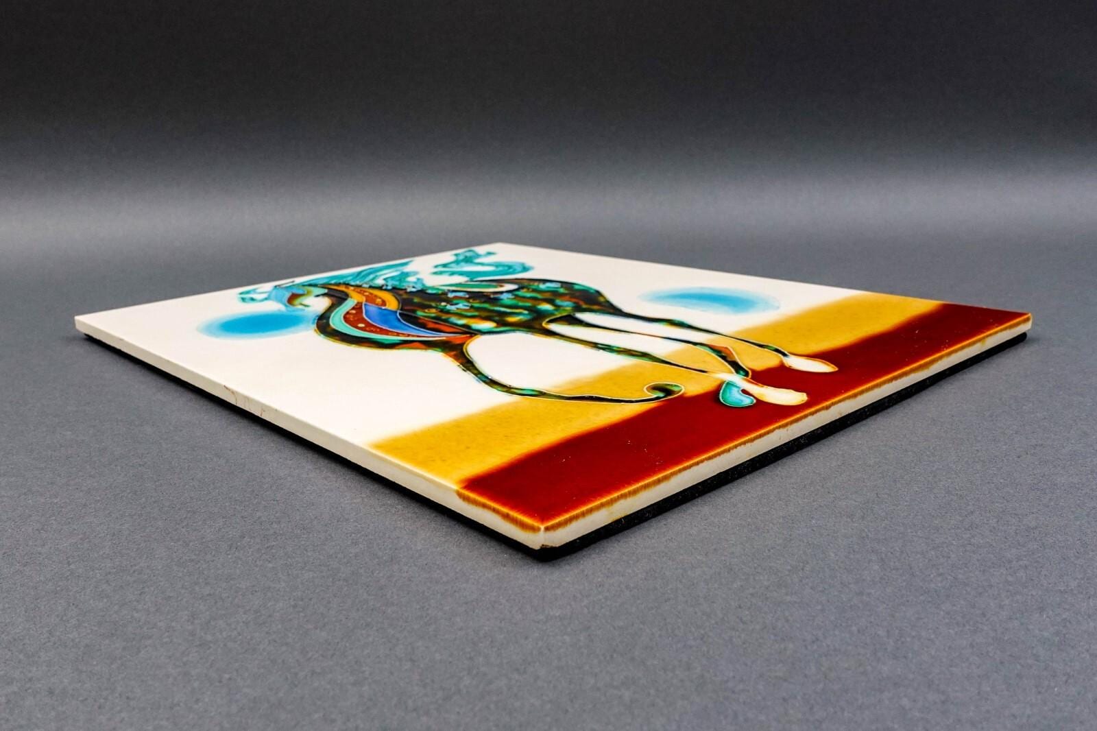 Wayne Gao Large Horse Glazed Enameled Ceramic Raised Wall Art Tile Plaque