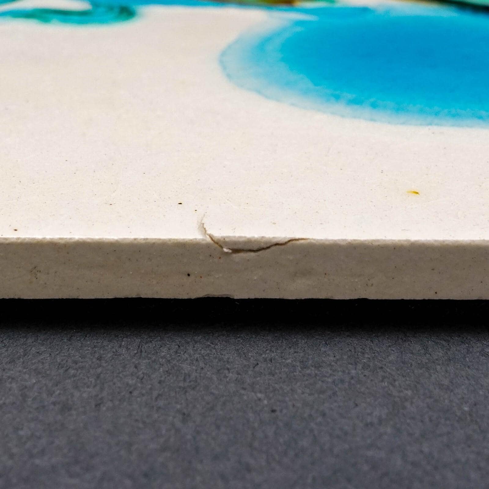 repairs. Some crazing a flake towards top a nick flack to bottom corners and a minimal scratch towards bottom seen under inspection.
