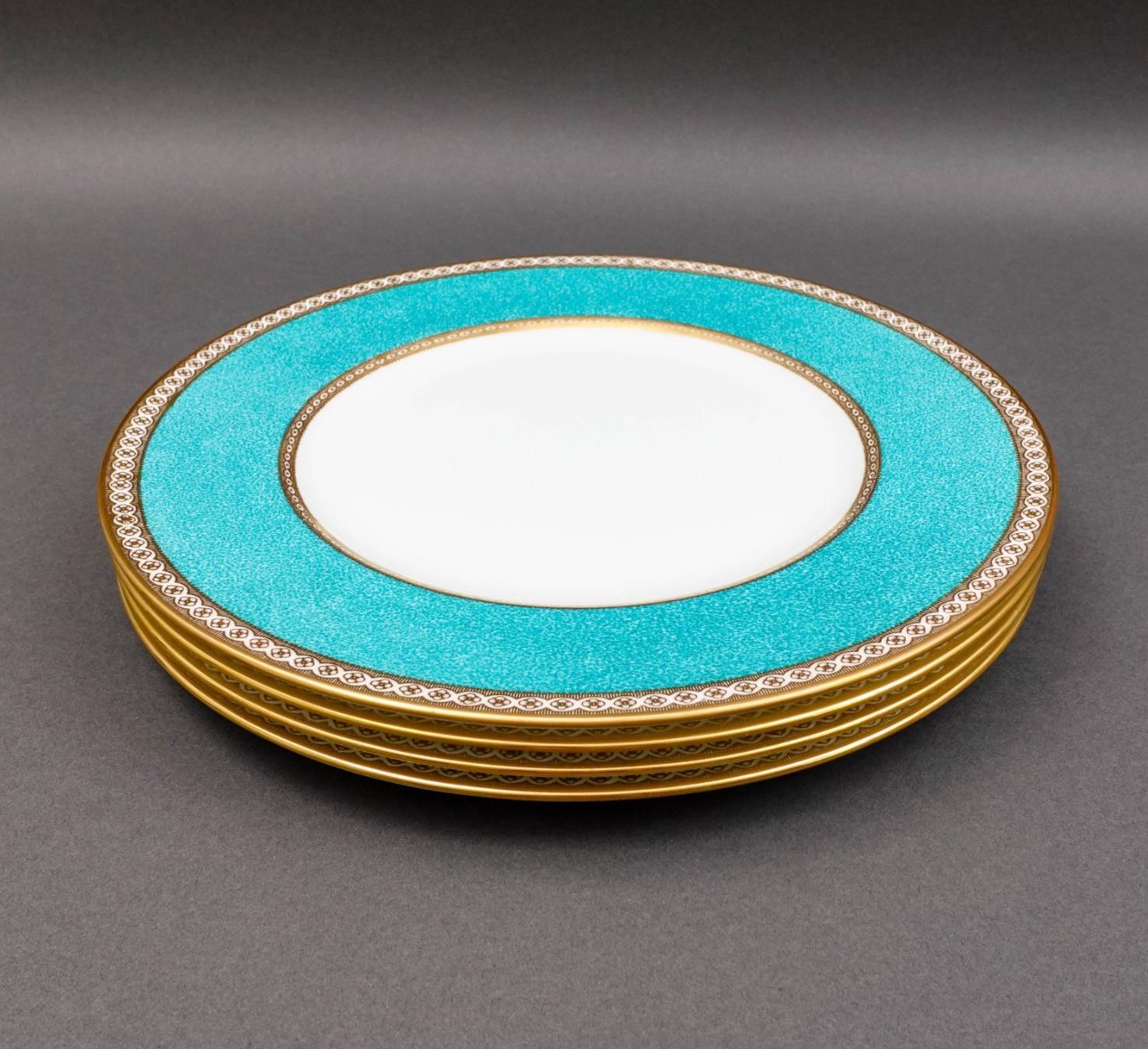 Wedgwood England Ulander Powder Turquoise 10 1/2" Dinner Plate Set Of 4