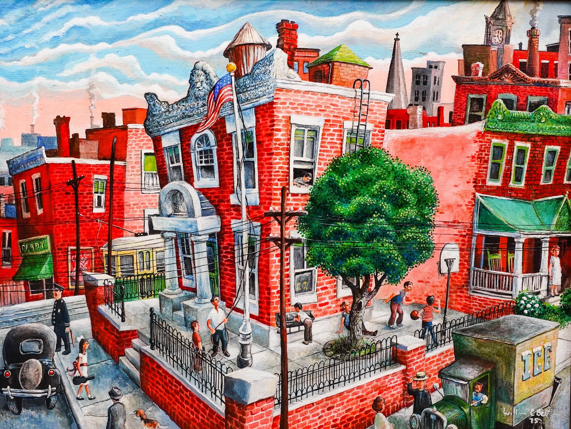 William C. Bell 1975 Signed School Yard Original Oil Painting.