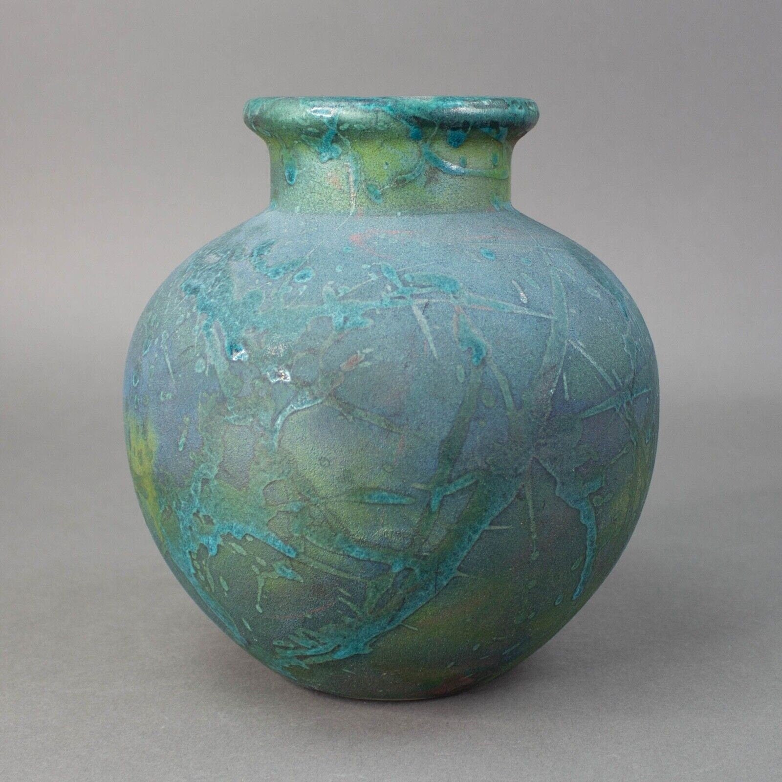 William K Turner Signed Raku Studio Art Pottery Vase. Measures 7" Diameter, 7 7/8" High.