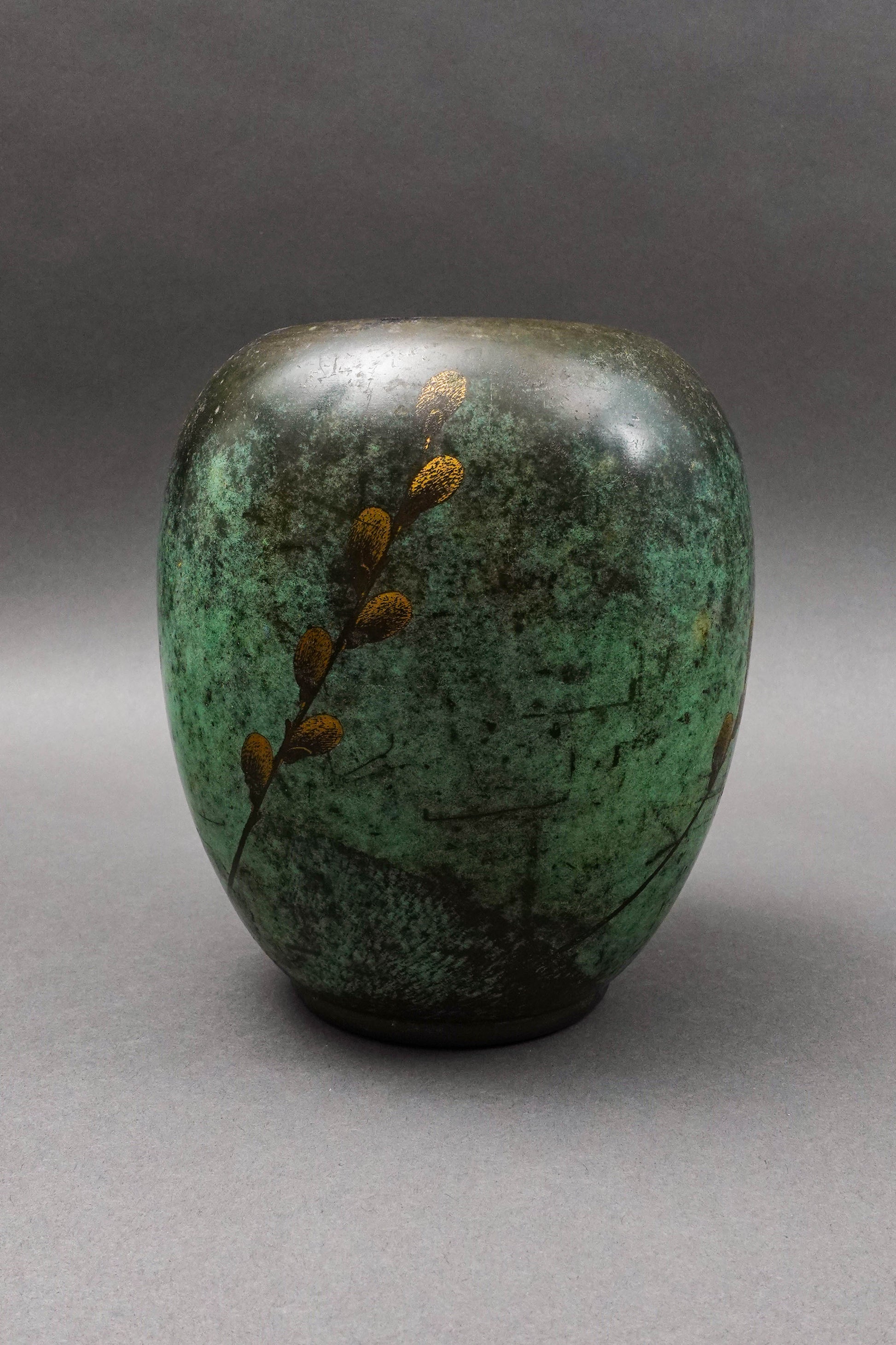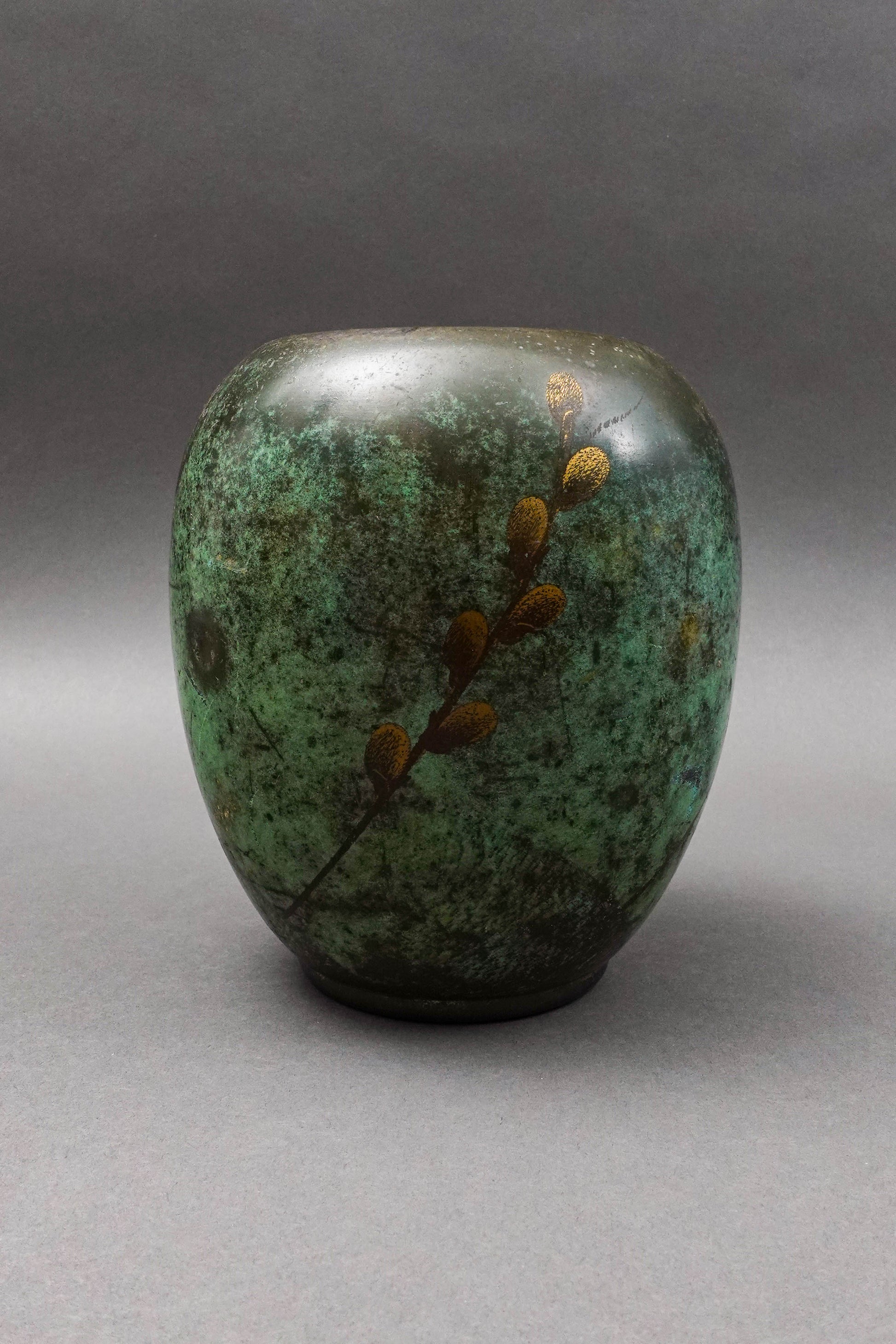 WMF Ikora Germany Paul Haustein Art Deco Patinated Bronze Willow Branch Vase.